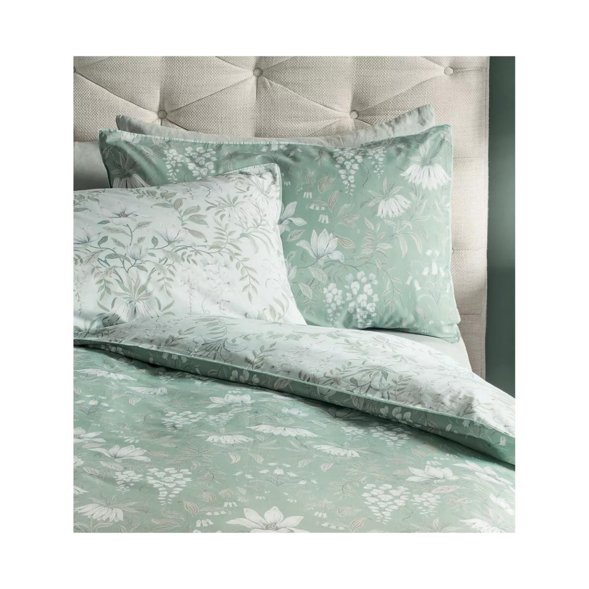 Parterre is a beautiful and sophisticated floral design featuring printed white flowers, swirling patterns of leaves and finished with a flat piped edge. In a sage green colour palette, this design brings a modern feel to a vintage-style pattern. This bed linen is made from pure cotton sateen with a thread count of 200 for breathable comfort every night. The duvet cover set is reversible so that you can style it two ways. Each set comes with 2x standard pillowcases. Have you thought about sheeting? Shop. Bedding sizes To fit duvet/pillow size (cm) Standard pillowcase, L75 x W50cm Double duvet cover, L200 x W200cm King duvet cover, L220 x W225cm Super king duvet cover, L220 x W260cm