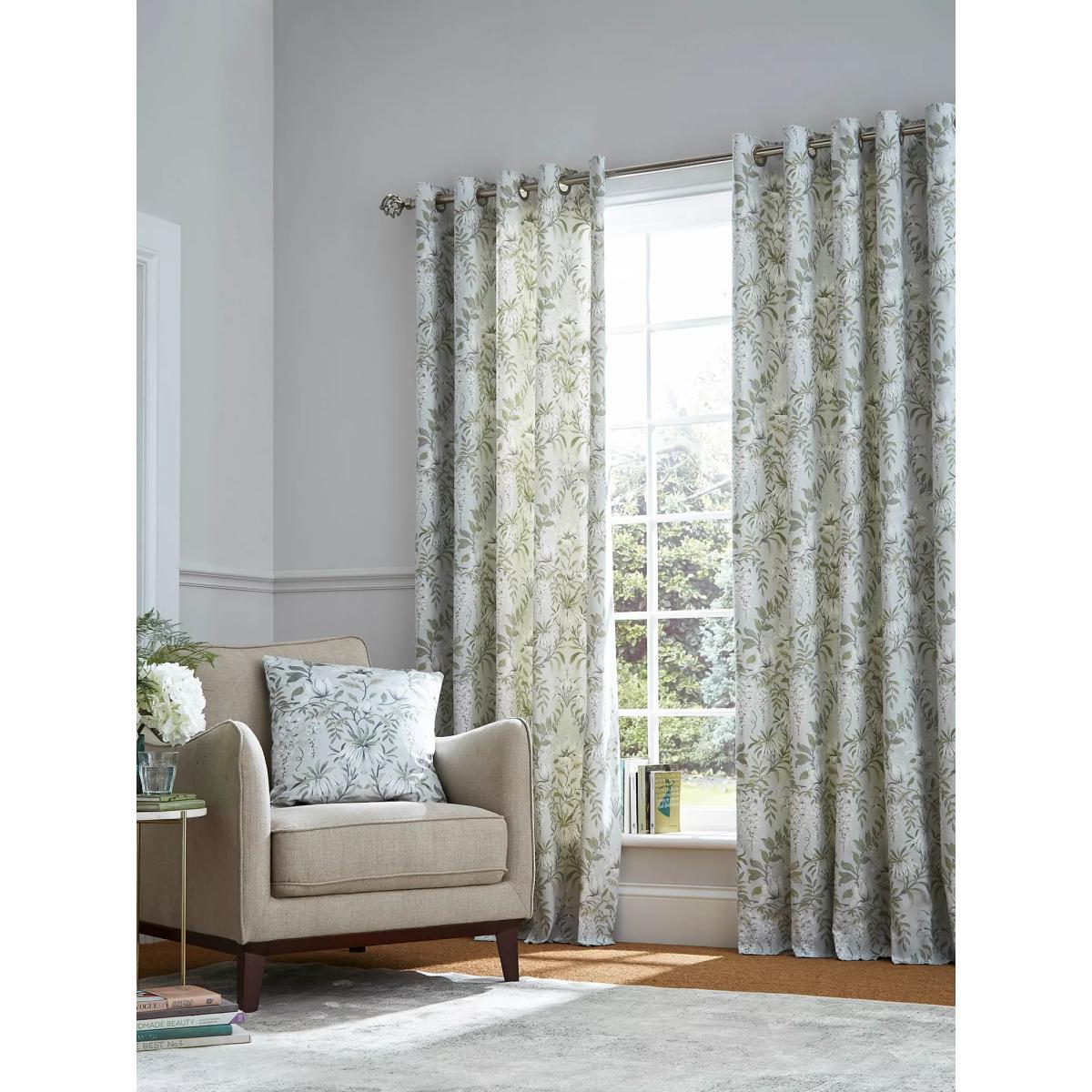 A sophisticated floral featuring painted flowers and swirling patterns of leaves - graceful and refined. The width stated indicates the size of one curtain panel when laid completely flat. This pack contains two panels and the track/pole length we've recommended allows for the two panels to be gathered when the curtains are drawn. For a fuller look, increase the curtain width. One pair of 162cm width curtains will fit a curtain track/pole size 133-162cm One pair of 223cm width curtains will fit a curtain track/pole size 182-223cm Do you need a curtain pole and accessories?