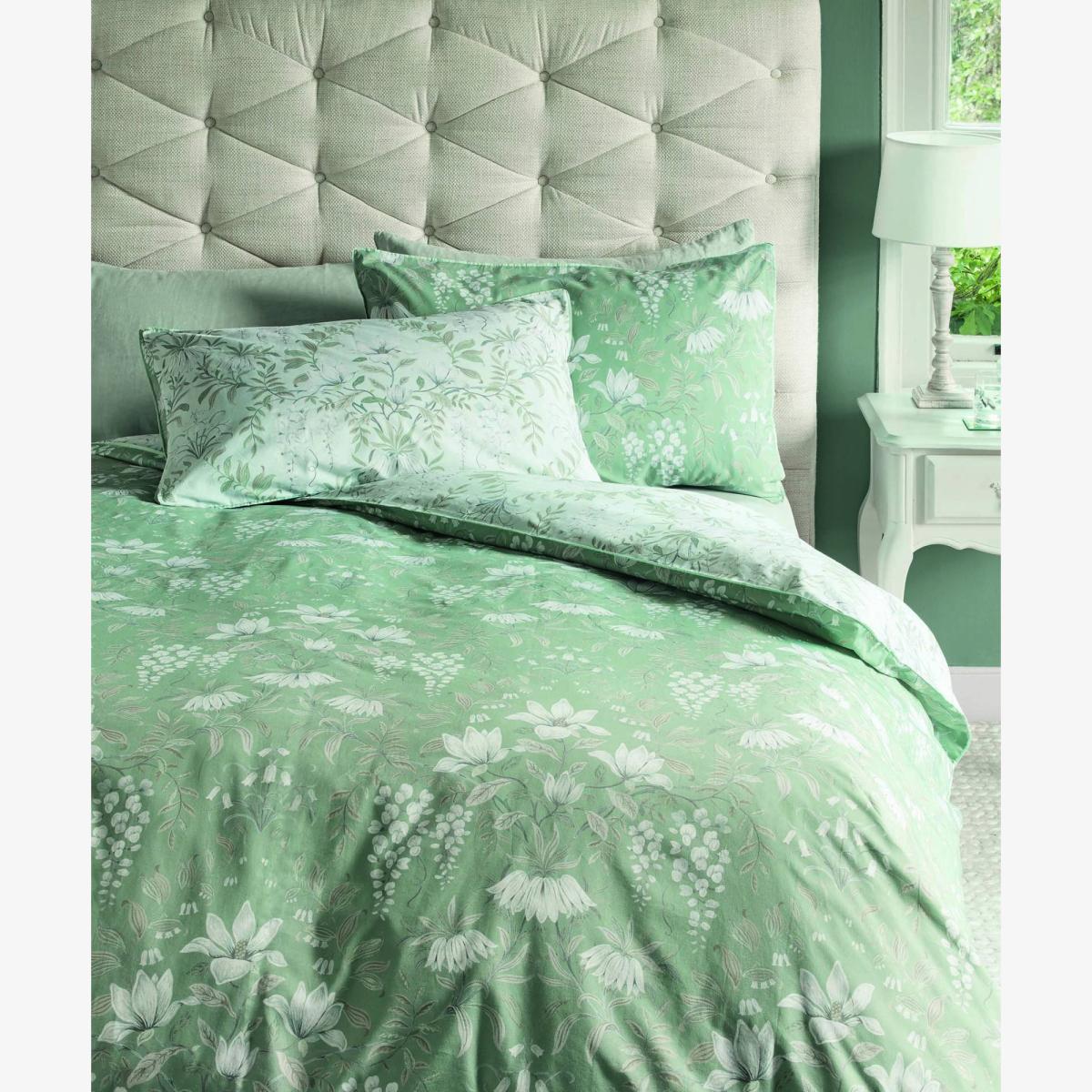 Parterre is a beautiful and sophisticated Laura Ashley floral design featuring printed white flowers, swirling patterns of leaves and finished with a flat piped edge. In a Sage palette, this design brings a modern feel to a vintage-style pattern, and this bedset is pure cotton sateen with a thread count of 200 for breathable comfort every night. This bedset is reversible so that you can style it two ways. Each set includes pillowcases - Single x1, Double, King, Super King x2 100% cotton 200 Thread Count Machine washable All screens vary in colour reproduction and whilst every effort has been made to display the colour as accurately as possible it is for guidance only.