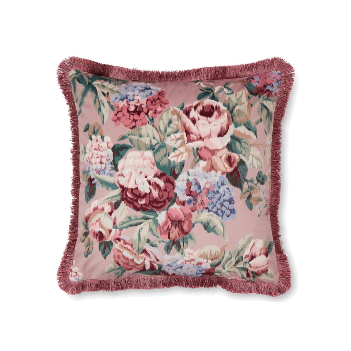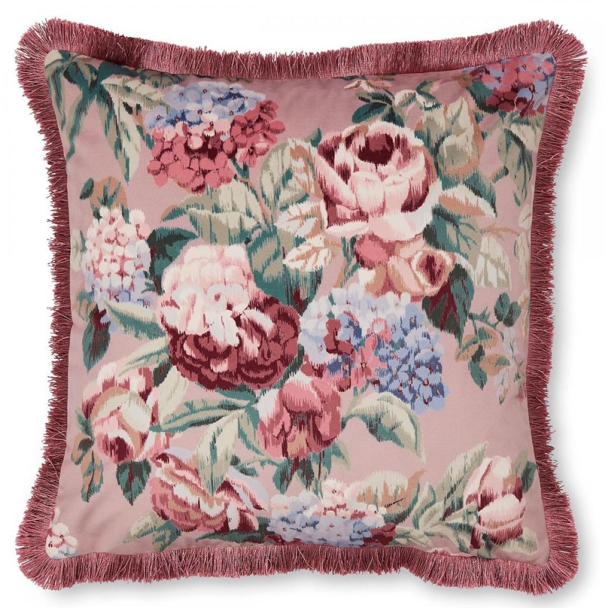 Pembrey is a beautifully cushion with a painted floral pattern printed onto sumptuous velour velvet. With deep mulberry tones and textured fringe finish, this Pembrey cushion is a stylish addition for any room. Featuring a feather cushion pad and made from 100 Polyester.
