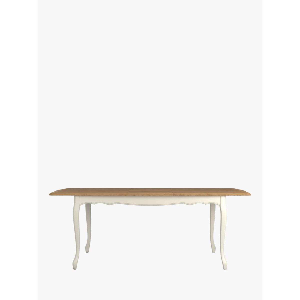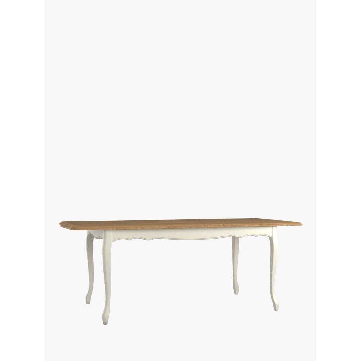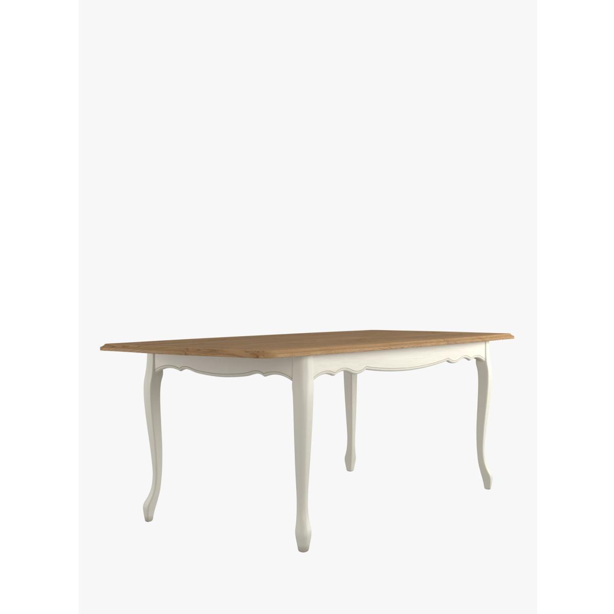 The Laura Ashley Provencale extending dining table exemplifies the beautiful proportions and intricate detailing of Rococo French furniture and is sure to make a statement with its elaborately sculpted legs and shaped aprons. The top is made from oak solids and veneers with a slightly weathered finish. All other surfaces are finished with a durable yet unassuming paint and a delicately applied patina to selected edges and profiles. This table will comfortably seat six when closed and eight when extended with the leaf, which stores within. Only the legs need to be attached to begin enjoying this piece - full assembly is not required. Want to see it first? You may want to see and get a feel for the furniture in one of our shops before ordering. We'll be able to tell you where the range you'd like to view is on display.