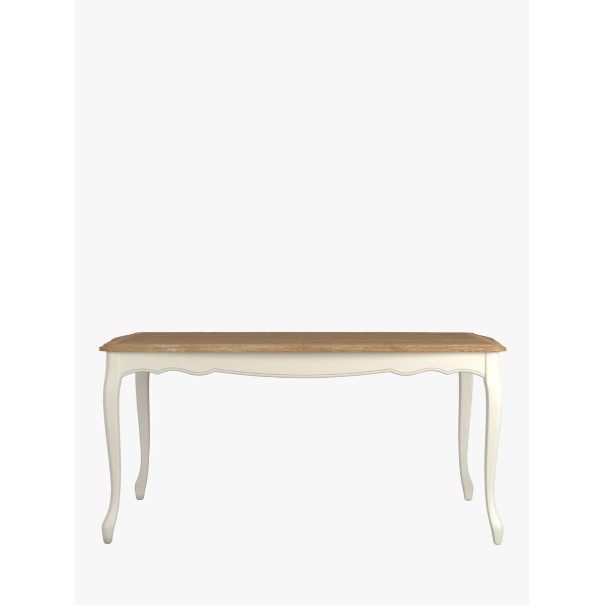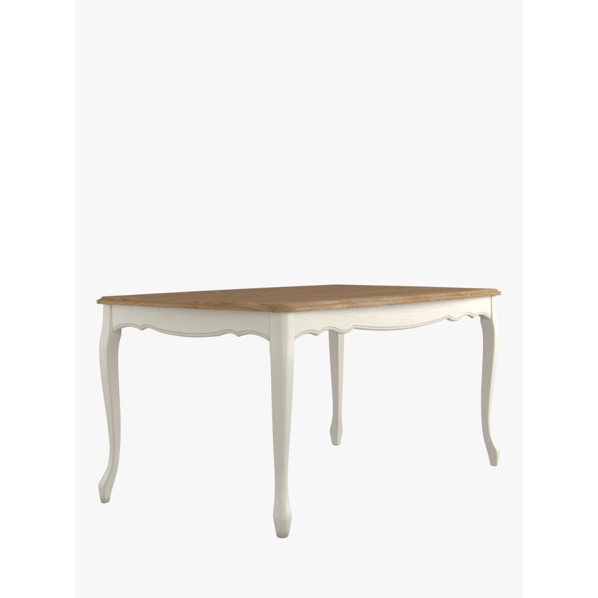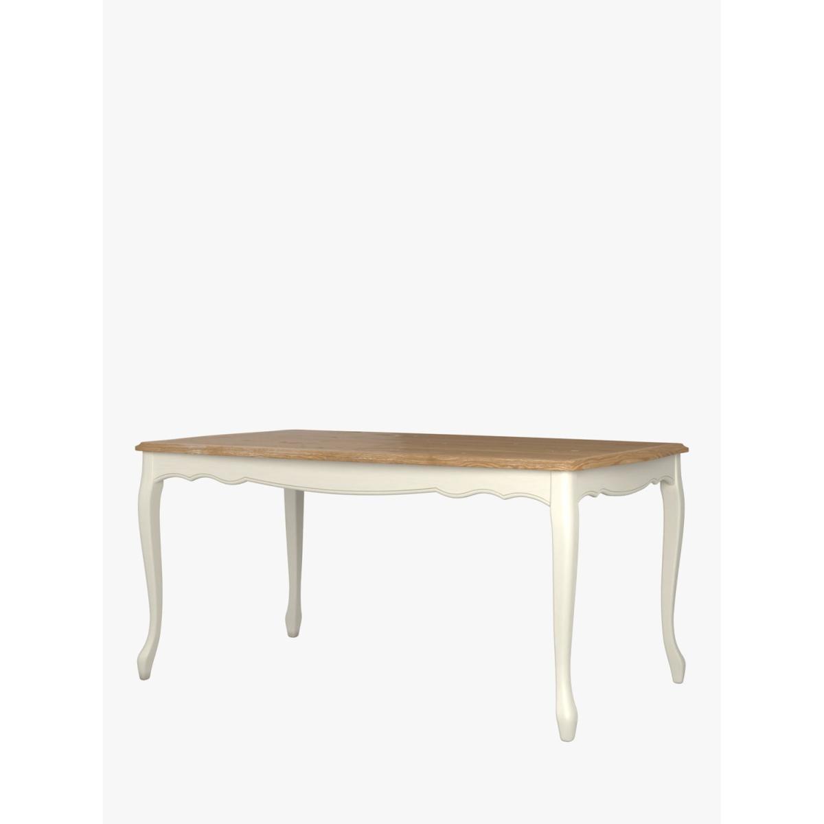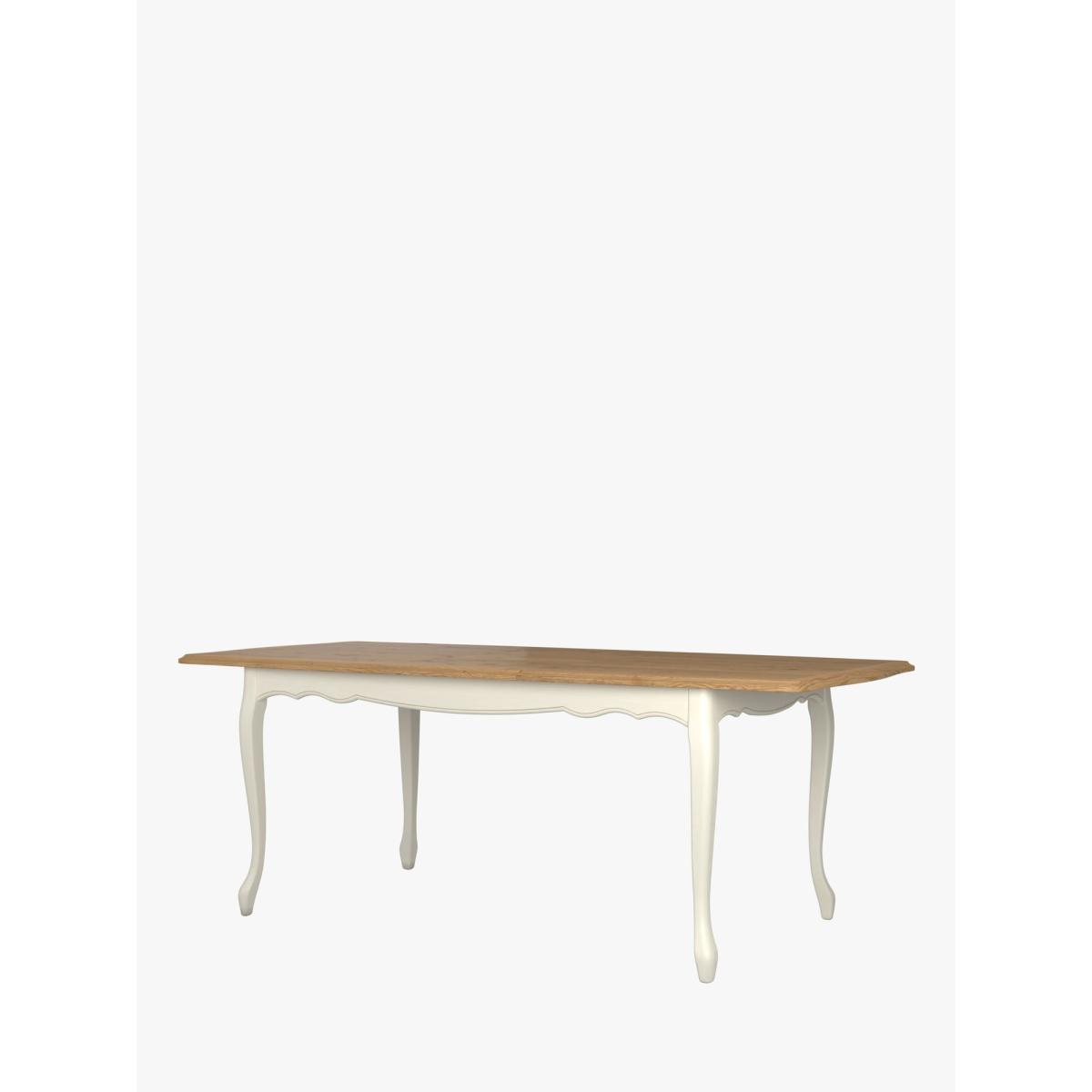 The Laura Ashley Provencale extending dining table exemplifies the beautiful proportions and intricate detailing of Rococo French furniture and is sure to make a statement with its elaborately sculpted legs and shaped aprons. The top is made from oak solids and veneers with a slightly weathered finish. All other surfaces are finished with a durable yet unassuming paint and a delicately applied patina to selected edges and profiles. This table will comfortably seat six when closed and eight when extended with the leaf, which stores within. Only the legs need to be attached to begin enjoying this piece - full assembly is not required. Want to see it first? You may want to see and get a feel for the furniture in one of our shops before ordering. We'll be able to tell you where the range you'd like to view is on display.