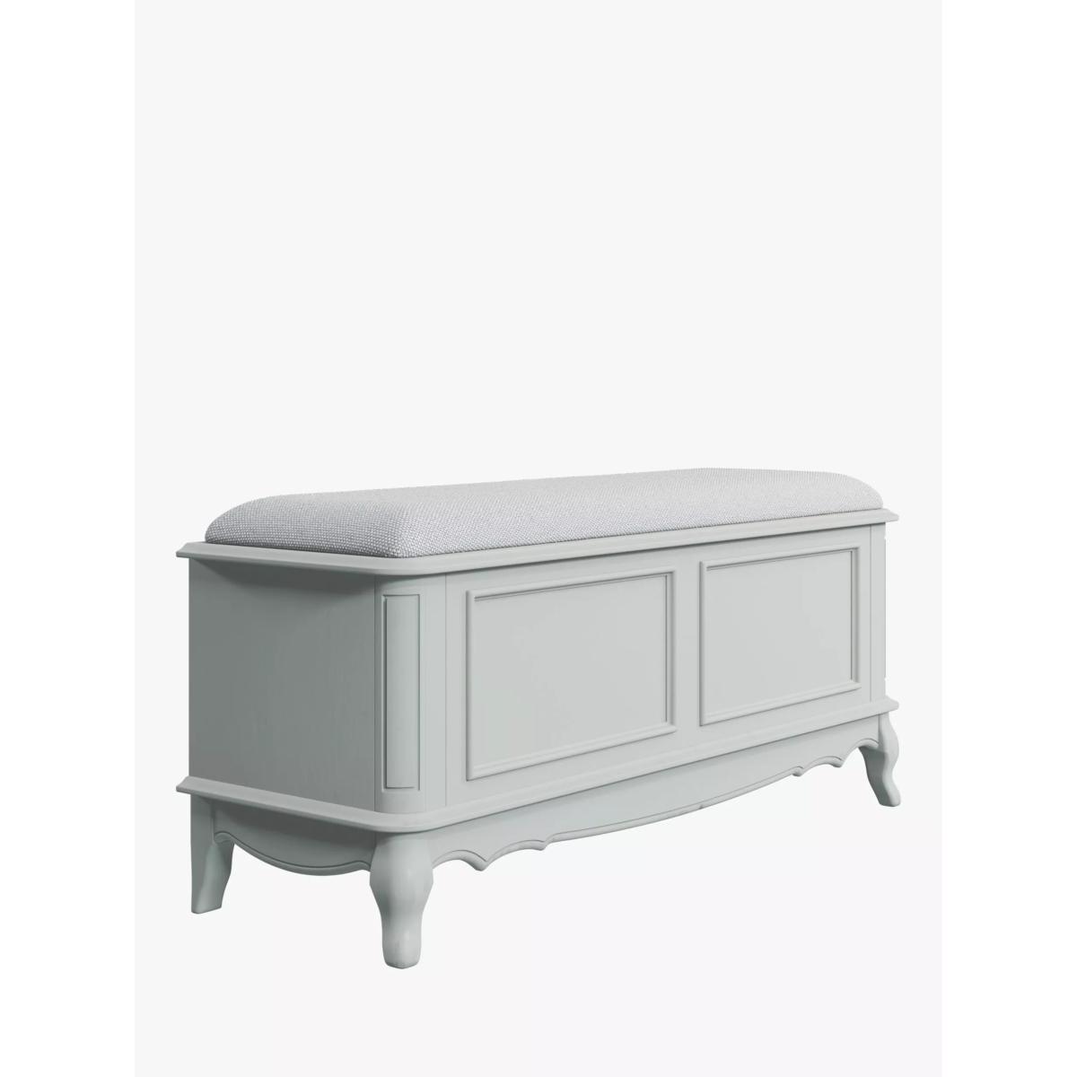 Perfectly placed at the end of a bed or under a windowsill, this blanket box from Laura Ashley provides useful storage space and also acts as an elegant and comfortable seat whilst dressing. The seat itself is upholstered in linen and lifts from hinged brackets to reveal ample storage space within. Its traditional design incorporates curved corners, panelling and inscribed details, and it has a durable, painted finish with a delicately applied patina on selected edges and profiles. See me in-store It's a good idea to get a feel for new furniture before you make a purchase.