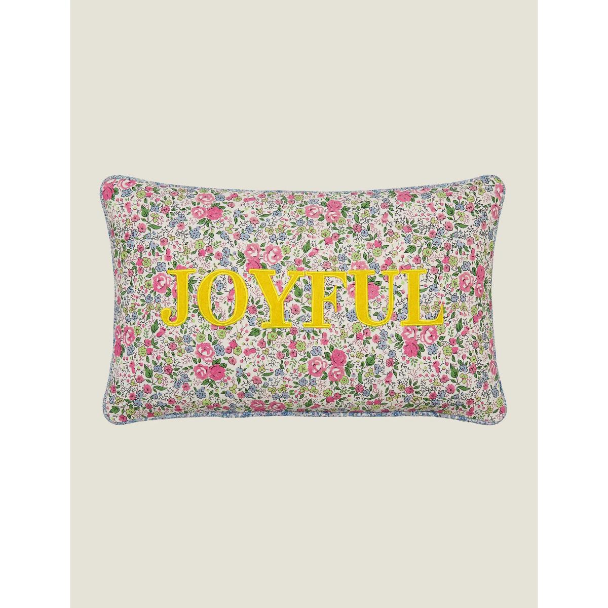 Set the mood in your home with this Laura Ashley bolster cushion featuring a cheerful 'Joyful' slogan. It's made from durable pure cotton, with a soft feather filling. The vintage-inspired floral print is complemented by contrast piping.