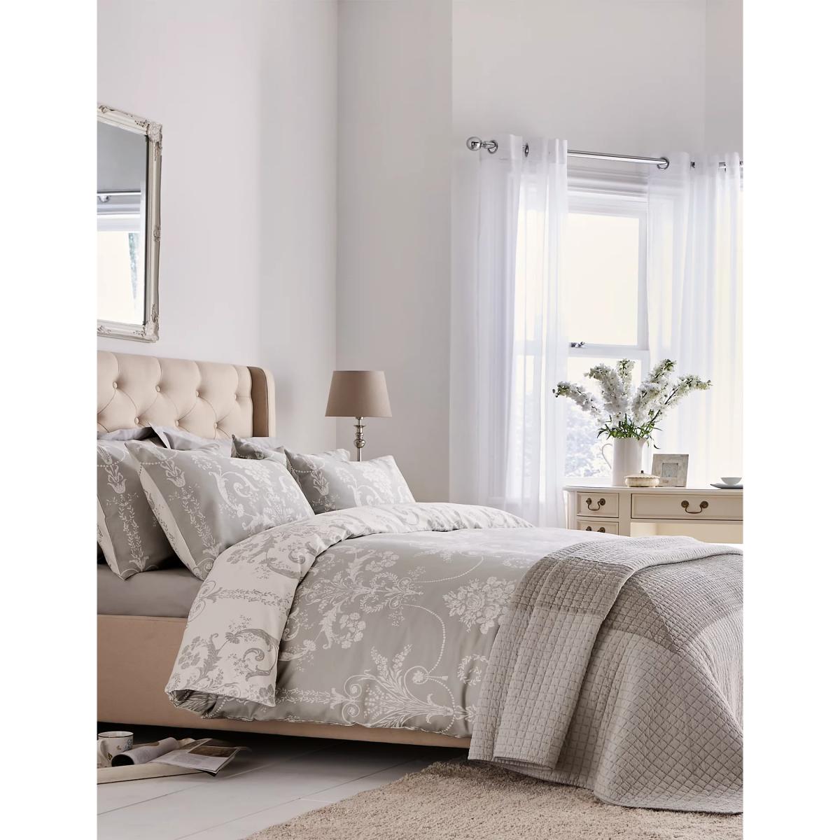 The floral print for this Laura Ashley bedding set is inspired by the refined interiors of French chateaus. It's made from 200 thread count cotton sateen, for a gloriously luxurious feel on your skin. Both the duvet cover and pillowcases are reversible, giving you a choice of styling options. Matching items are available.