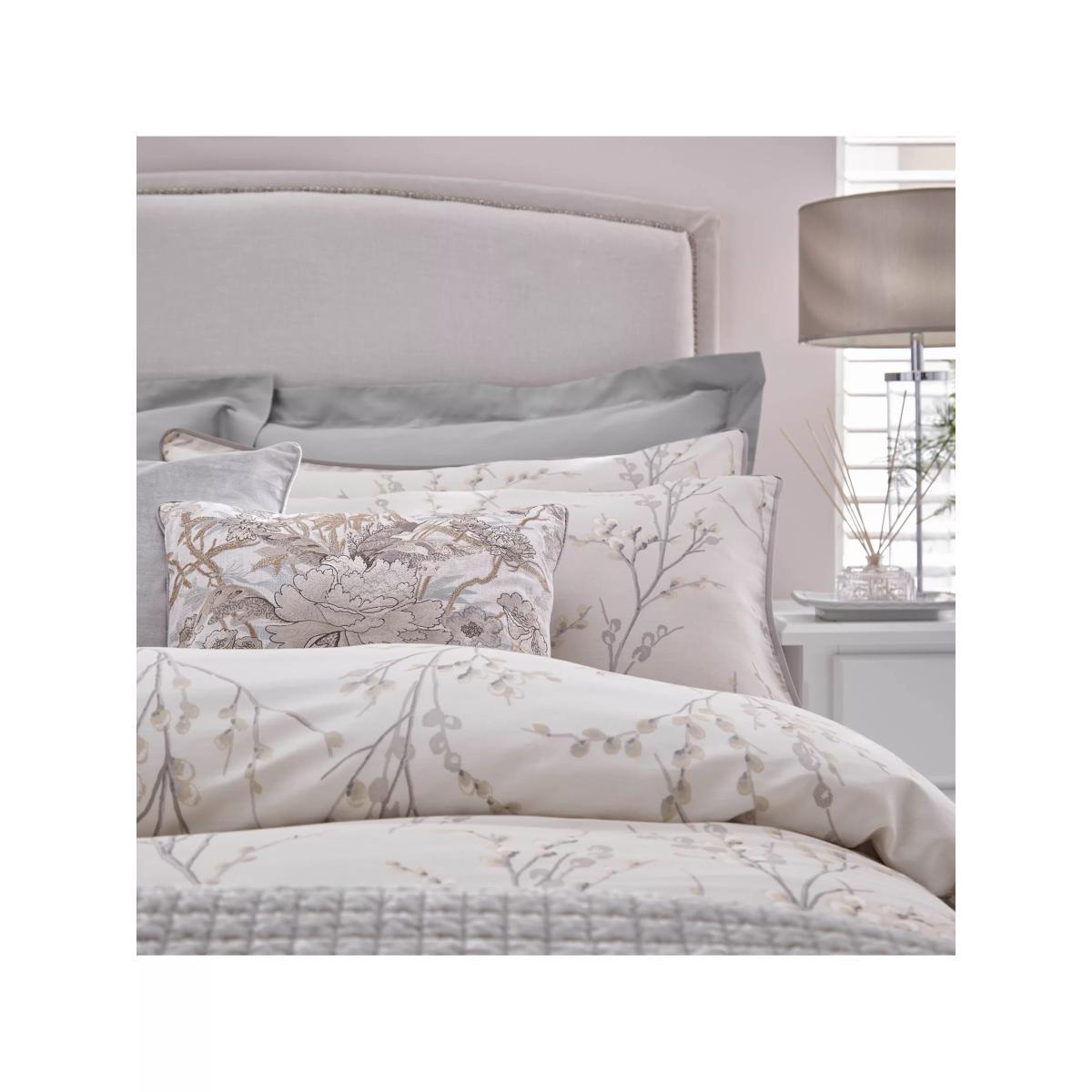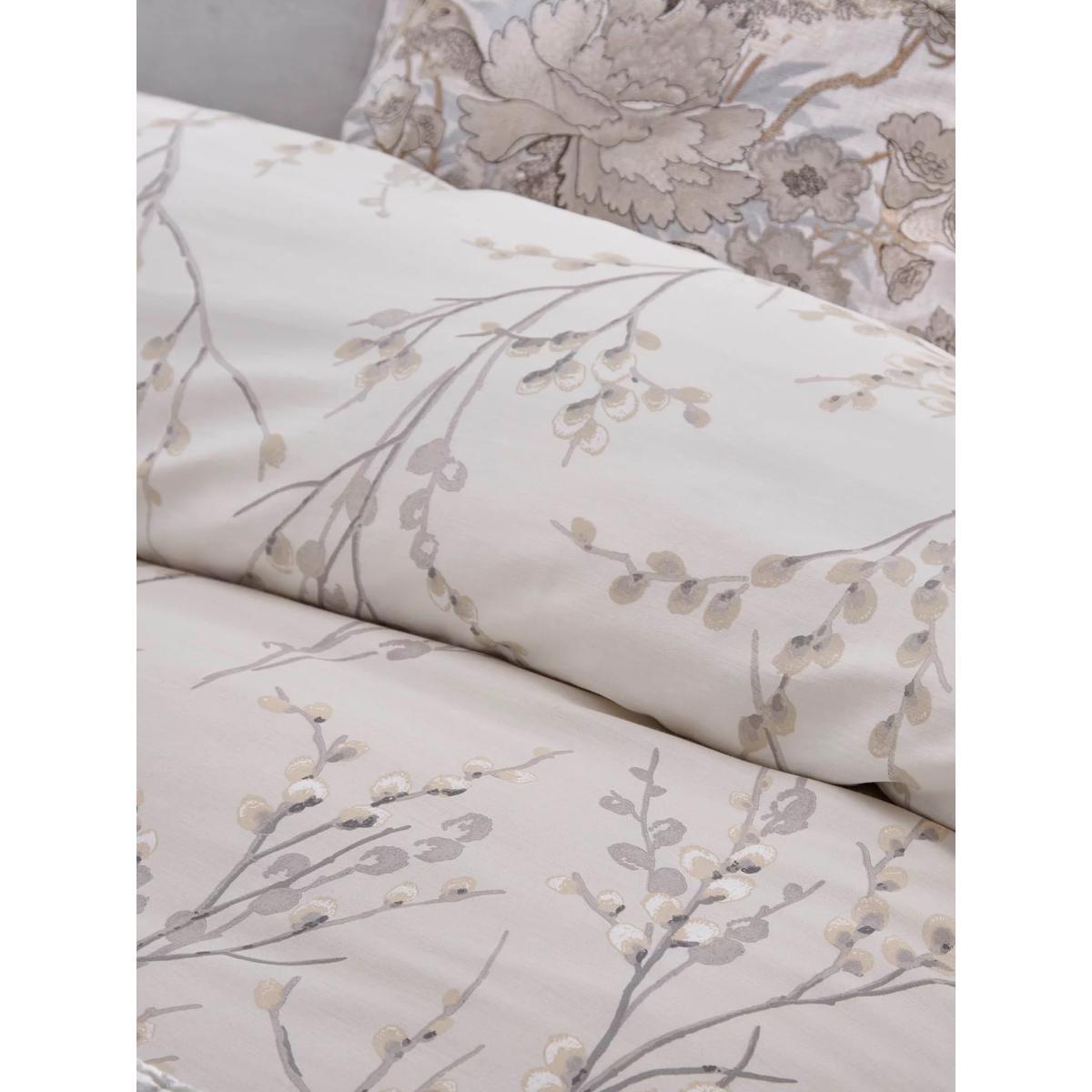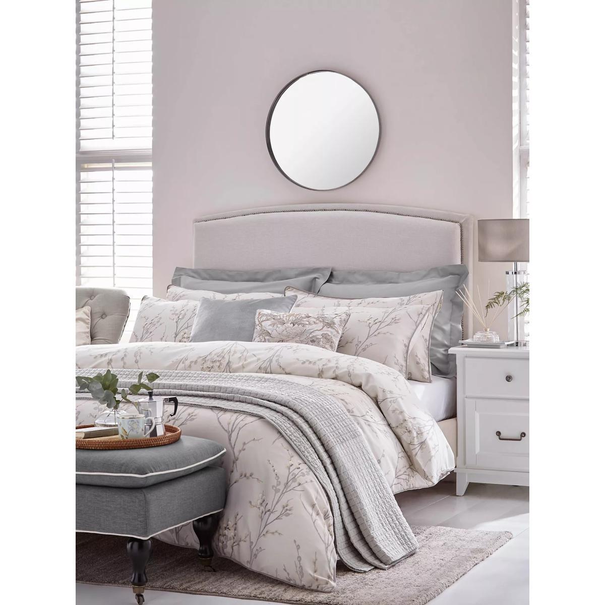 The popular Laura Ashley Pussy Willow floral print is perfect for bringing a fresh, elegant feel to your home decor. Made from sateen cotton for a lustrous sheen, this beautiful, printed duvet cover comes in a contemporary dove grey colour palette which will add a modern touch to your bedroom. This Laura Ashley duvet cover set is reversible so that you can style it two ways and also features a flat piped edge. Each set comes with 2x standard pillowcases. Have you thought about sheeting? Shop. Bedding sizes To fit duvet/pillow size (cm) Standard pillowcase, L75 x W50cm Double duvet cover, L200 x W200cm King duvet cover, L220 x W225cm Super king duvet cover, L220 x W260cm