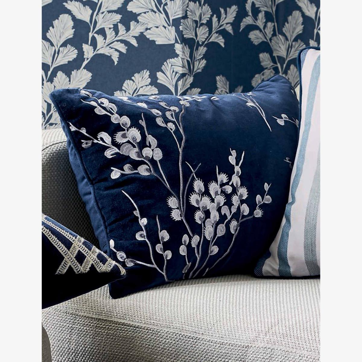 Laura Ashley Pussy Willow Velvet Embroidered Cushion Navy Mix