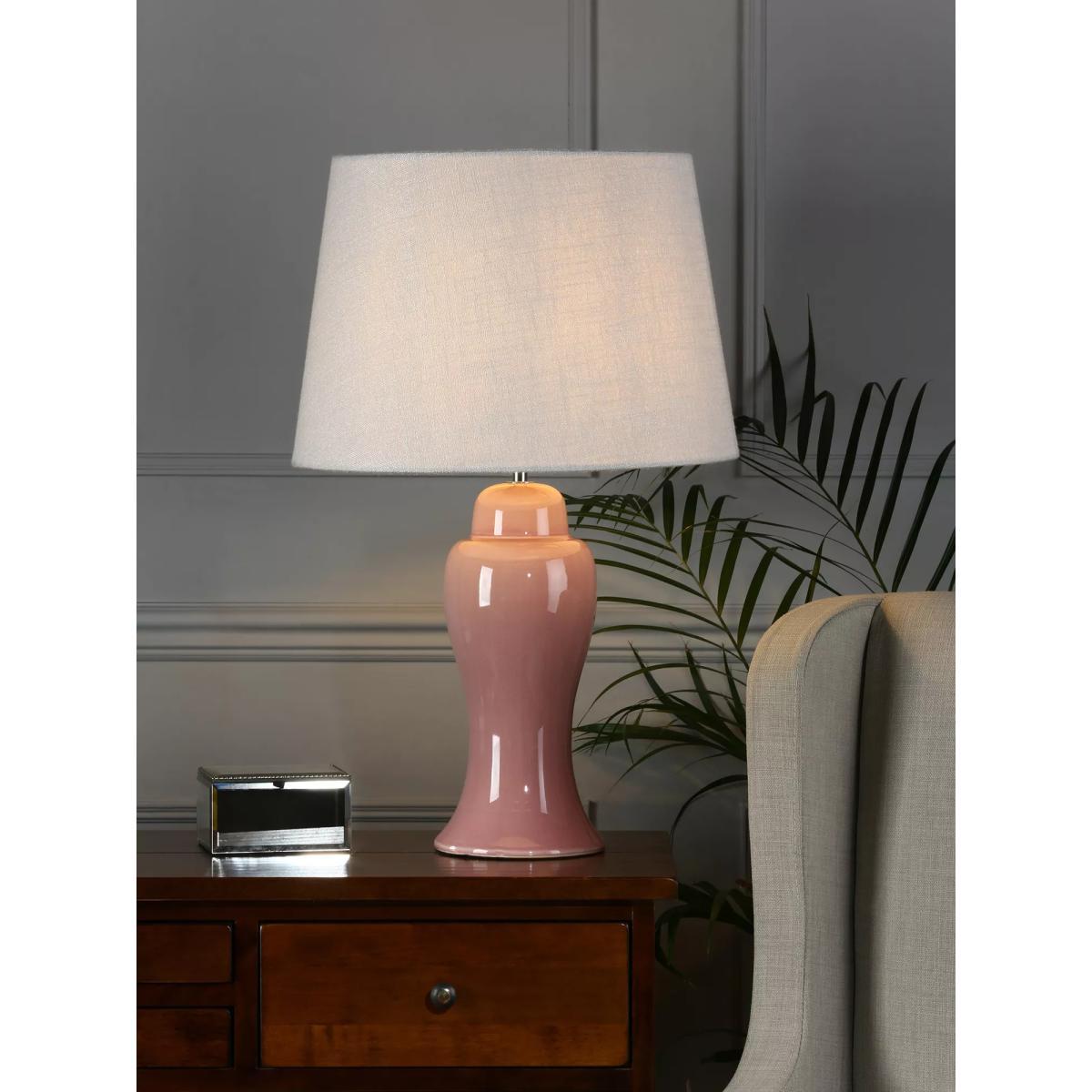 Made from ceramic in a classic vase shape, this tall table lamp is easy to style at home. Available in a range of warm colours, it's paired with a tapered fabric lampshade that enhances a warm glow of light and we like the subtle crackle-effect glazed finish on the base. One LED bulb is required.