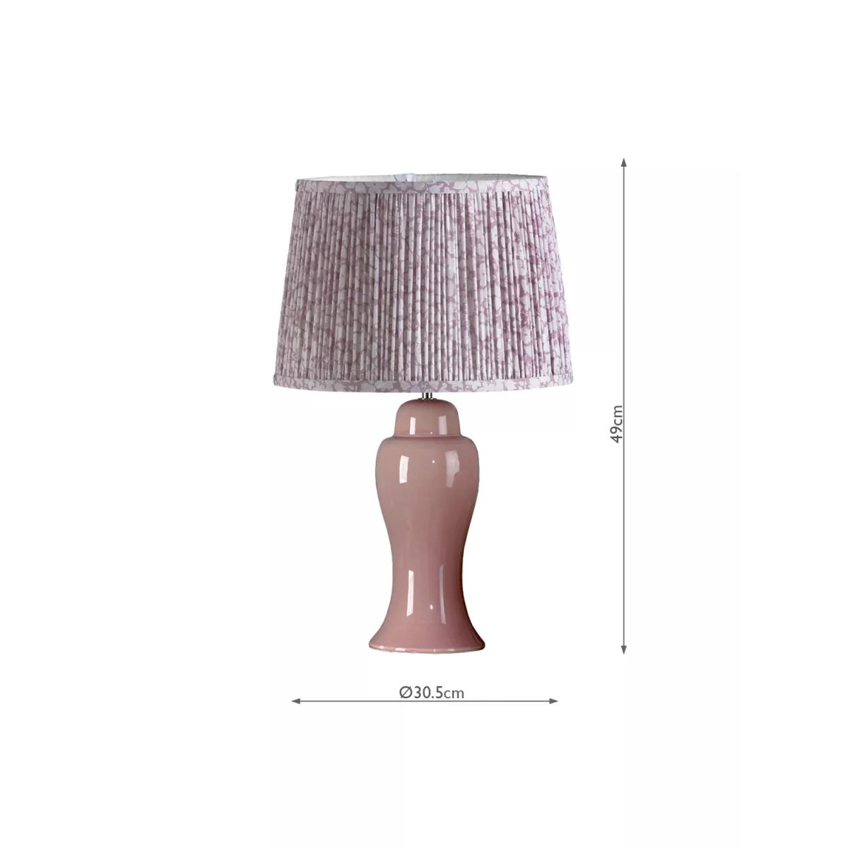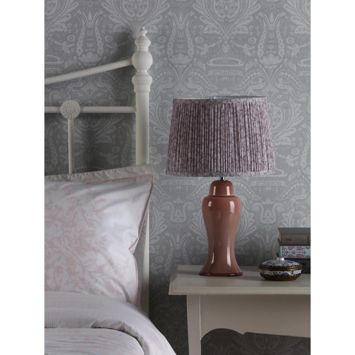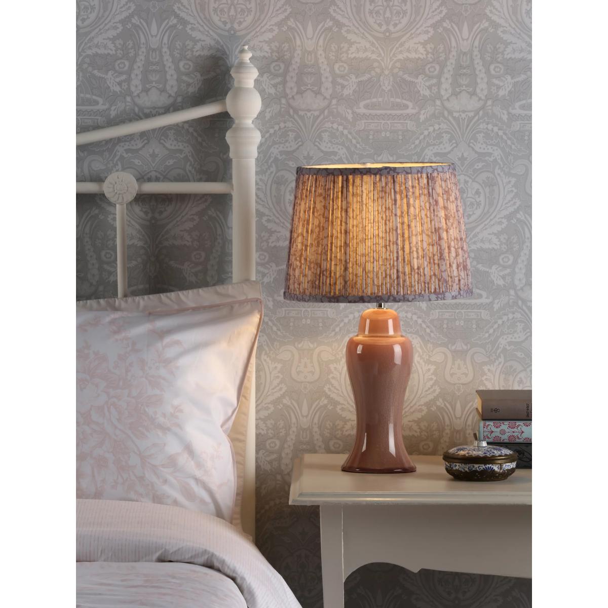 Made from ceramic this classic, vase shape table lamp is paired with the Laura Ashley Mille Fleur pleated cotton shade, finished in mulberry. The subtle crackle-effect glazed finish on the base makes it an easy to live with style, sitting on side table in the living room, a hall console or a bedside table. It comes with a braided grey cable with a convenient push bar switch. One LED bulb is required.