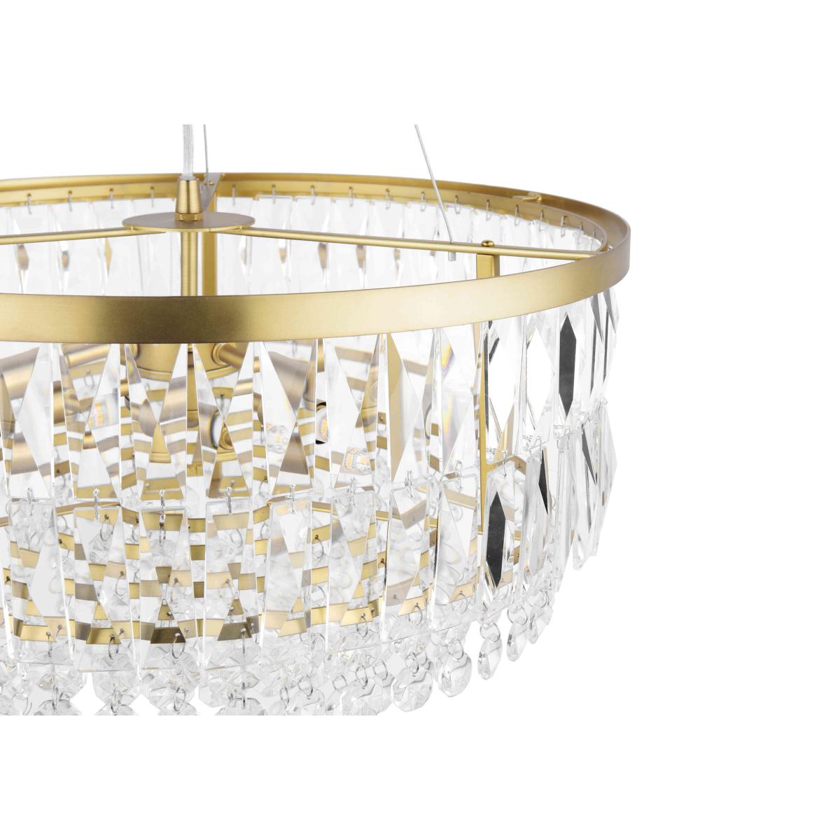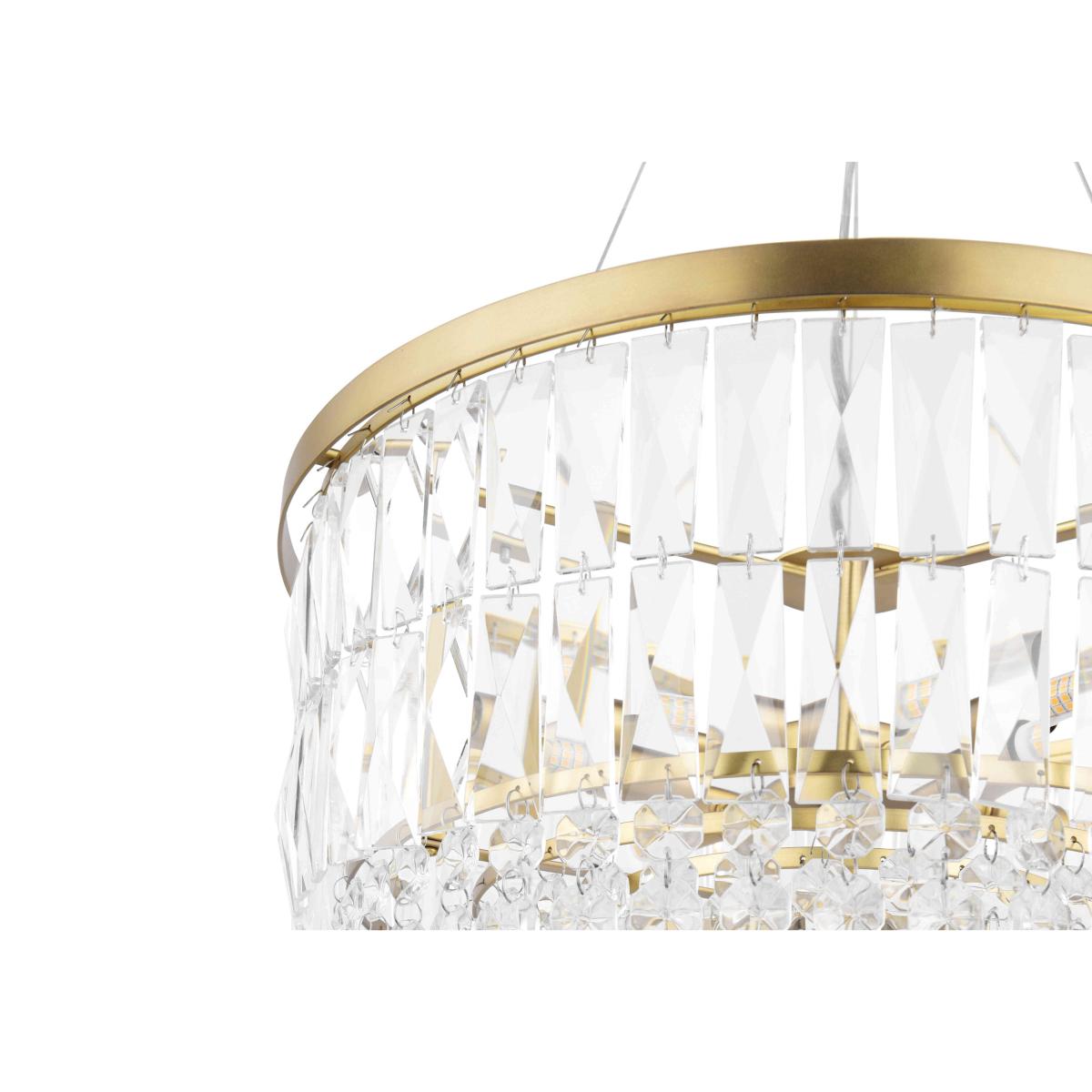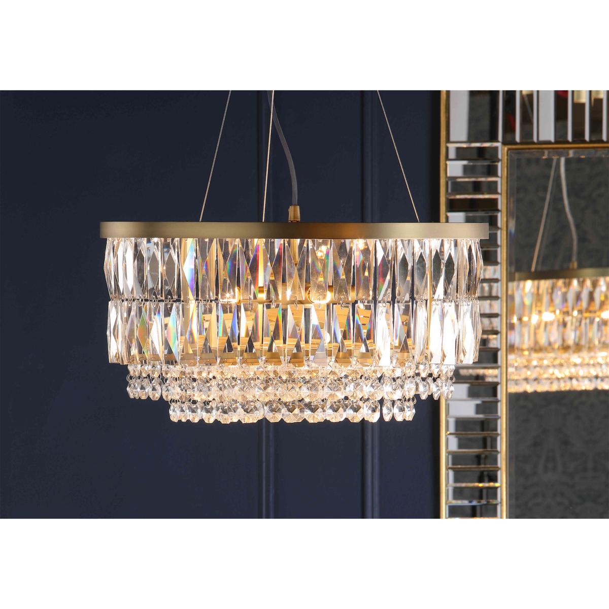 Absolutely stunning. More chandelier than ceiling pendant, this gorgeous and grand light fixture shimmers and sparkles, bringing timeless glam style to any room. Why you'll love it Enjoy instant glam style with this large crystal ceiling pendant. Inspired by Art Deco design. Multiple tiers of crystals descend from 2 circular metal frames. Large and small faceted glass crystals sparkle beautifully. Antique brass-effect metal accents have a sophisticated matt finish. Height adjustable at installation. This ceiling pendant is part of the Laura Ashley lighting collection. What you need to know Made of crystal glass and mild steel. Supplied with 110 cm cable. Requires 4 x G9 max. 33 W bulbs (not included). Please do not exceed this wattage. To clean, wipe gently with a soft dry cloth. Do not use polishes or abrasive cleaning products. Be sure to switch off before cleaning and changing the bulbs. Dimensions Height: 30 cm (12 in). Diameter: 49 cm (19 in). Minimum height from ceiling including light: 60 cm (24 in). Maximum height from ceiling including light: 130 cm (51 in).