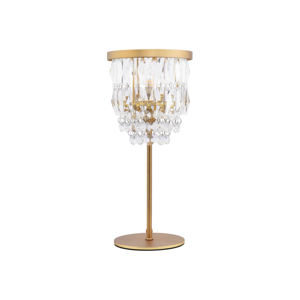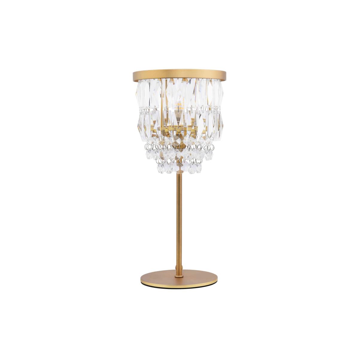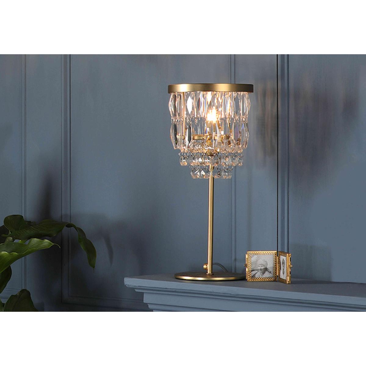 This stunning table lamp is an elegant symphony of faceted crystal droplets suspended from antique brass-finished metal circlets. Part of the Laura Ashley lighting collection. Why you'll love it Enjoy statement glam style with this crystal table lamp. Inspired by Art Deco design. Multiple tiers of crystals descend from 2 circular metal frames. Large and small faceted glass crystals sparkle beautifully. Antique brass-effect metal accents have a sophisticated matt finish. This table lamp is part of the Laura Ashley lighting collection. What you need to know Made of crystal glass and mild steel. Supplied with 150 cm cable. Requires 1 x G9 max. 33 W bulb (not included). Please do not exceed this wattage. To clean, wipe gently with a soft dry cloth. Do not use polishes or abrasive cleaning products. Disconnect from the power outlet before cleaning or changing the bulb. Dimensions Height: 36 cm (14 in). Diameter: 16 cm (7 in).