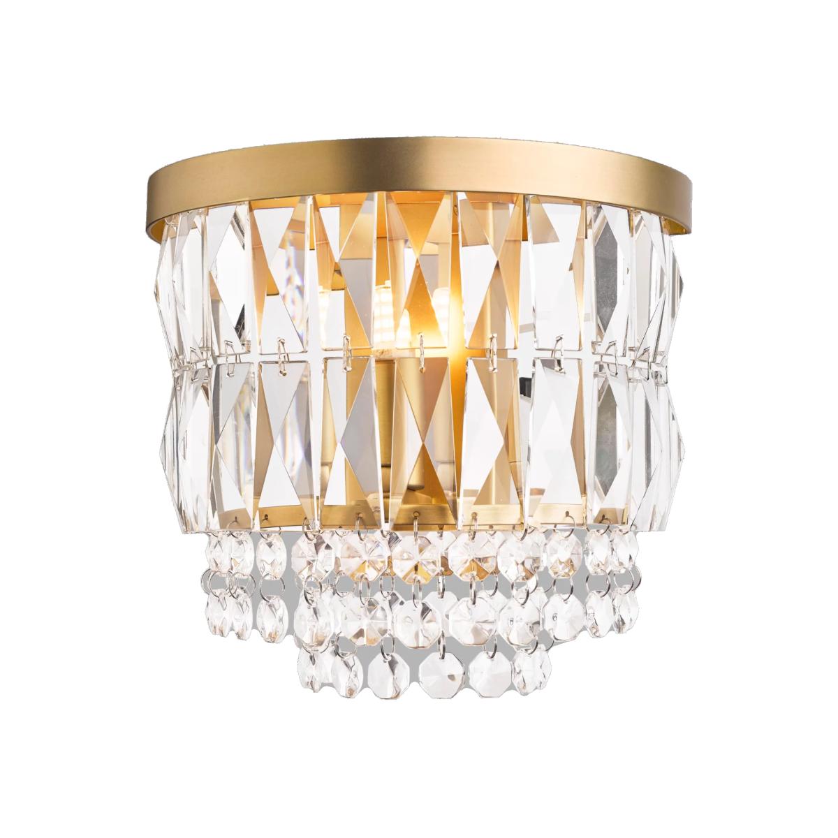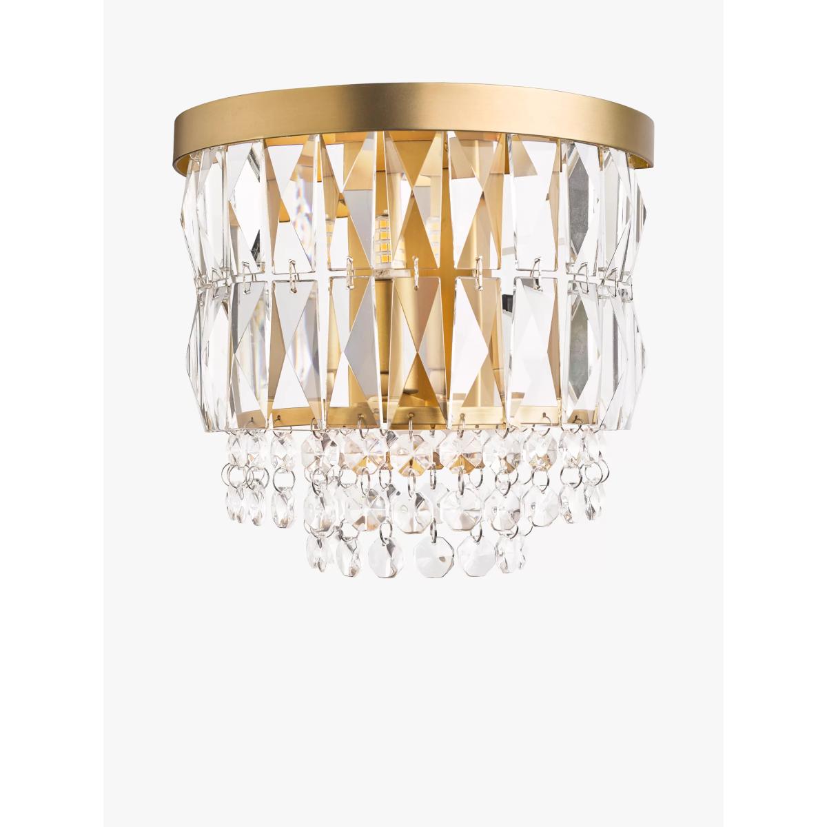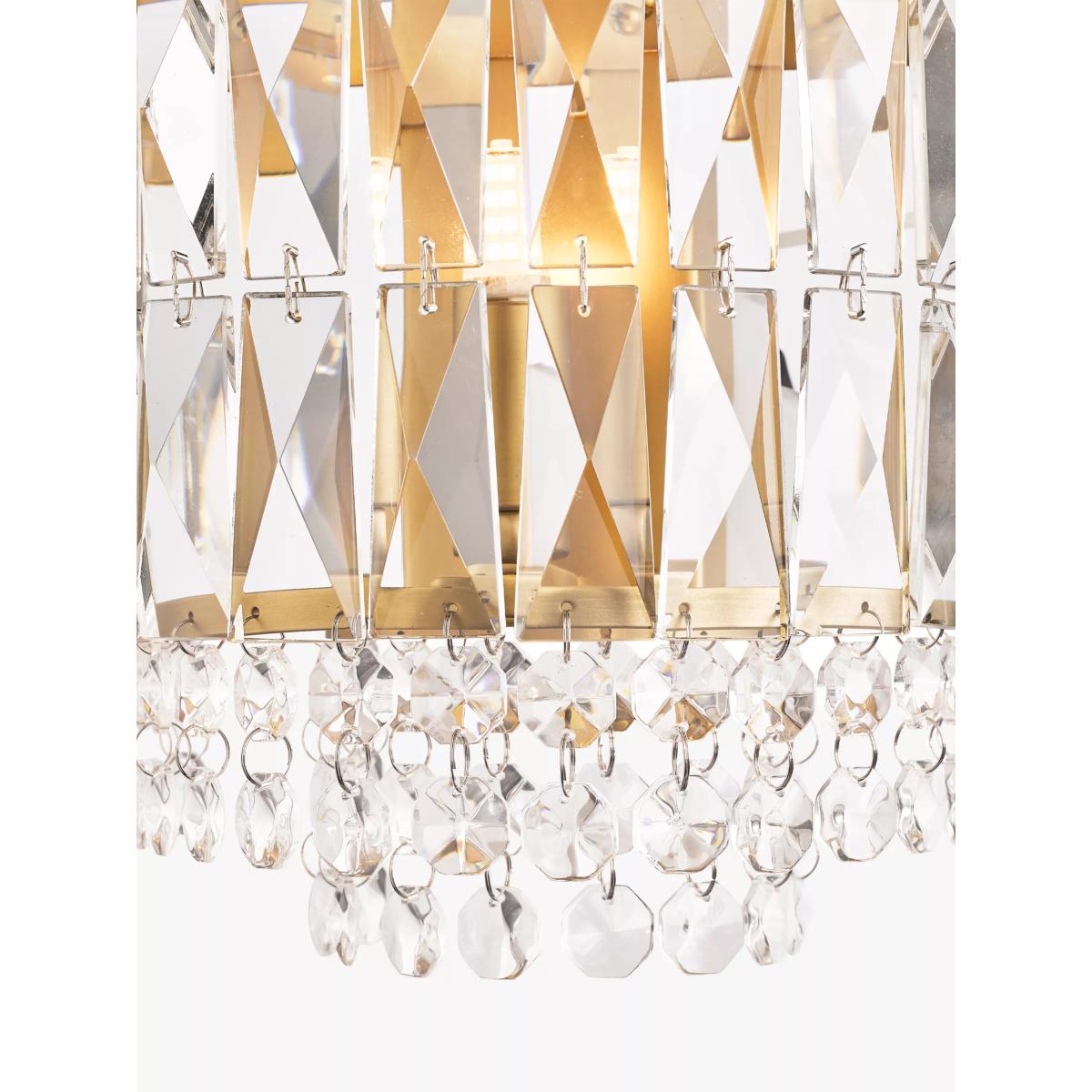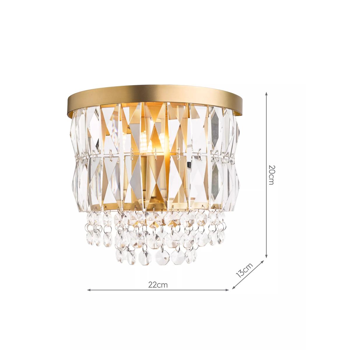 The Rhosill Wall Light by Laura Ashley features stunning faceted glass crystals with matt antique brass-effect metal accents. This statement wall lamp would complement any room.