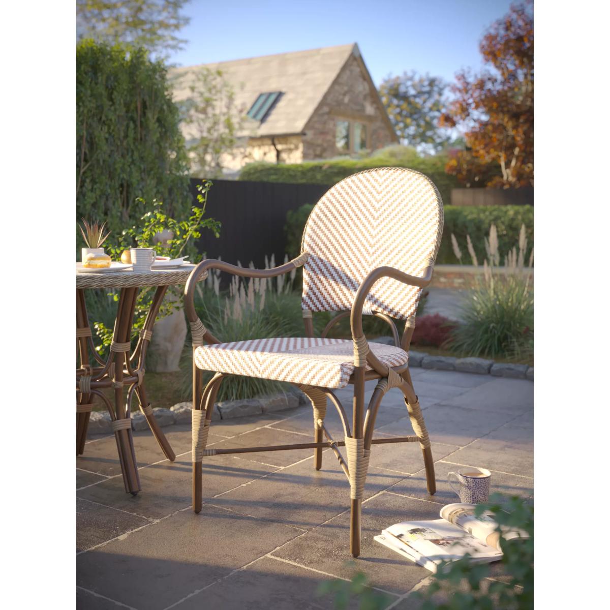 Handwoven onto expertly crafted powder-coated rust-free aluminium frames with UV and frost-resistant outdoor material, the Laura Ashley Riviera bistro set is an elegant choice for the garden or in the home. The round bistro table and the two matching dining chairs have smooth aluminium frames with an authentic wood-effect finish. Arrives fully assembled for immediate use. Low maintenance, simply wipe clean with a damp cloth to remove any marks or spillages.