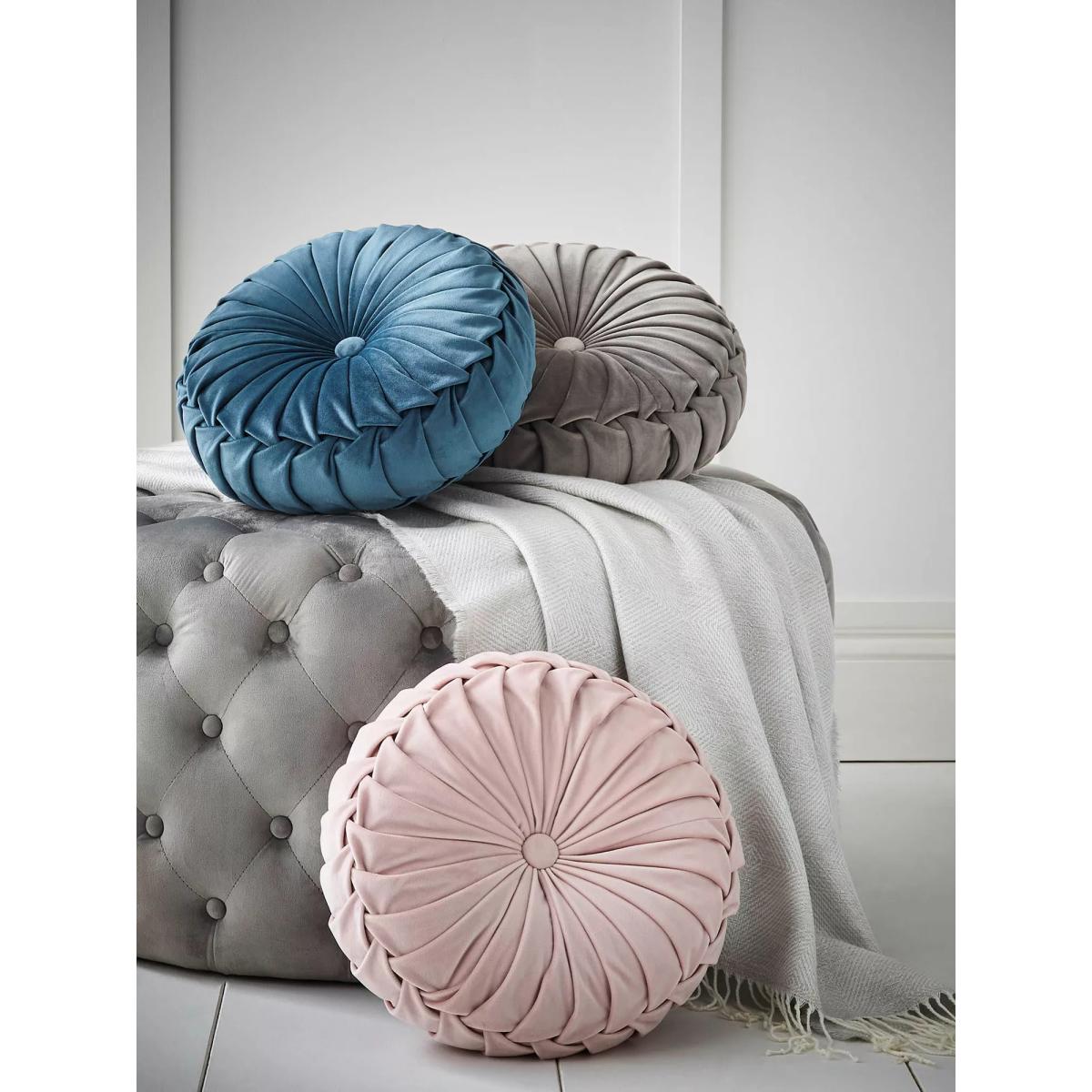 This beautiful round cushion features elegant pleats made from sumptuous polyester velvet.