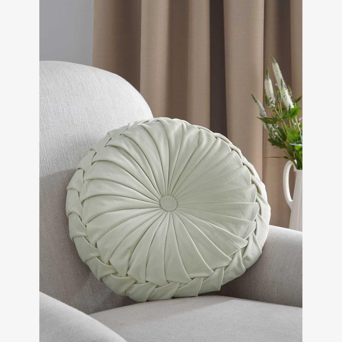 Laura Ashley Rosanna Velvet Round Pleated Cushion Light Green