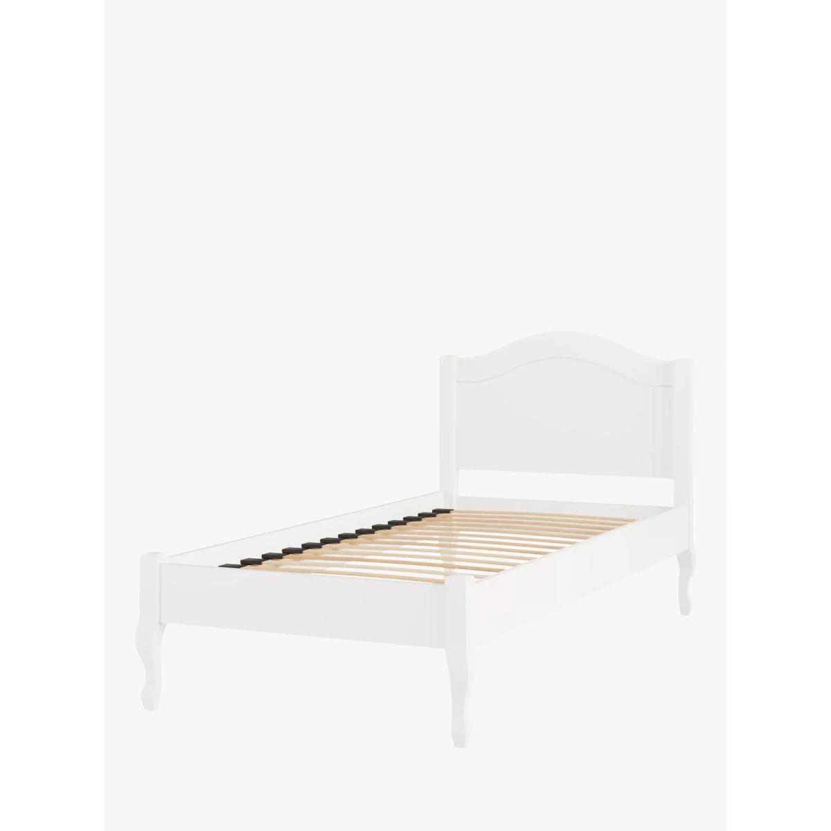 The Laura Ashley Rosie Children's furniture range is a re-scaled, Children's version of the timeless Rosalind range; borrowing from the elegant shaping of French Rococo furniture but applied in a more restrained and contemporary fashion. The bed features shaped legs and uses sprung slats for a supportive and ventilated mattress base. The painted finish is complemented with solid oak rails on the head and footboards. All surfaces are given a graceful yet durable painted finish. The bed has all been carefully designed, manufactured and finished to comply with Children's British Standards and is suitable for Children aged 4 and above.