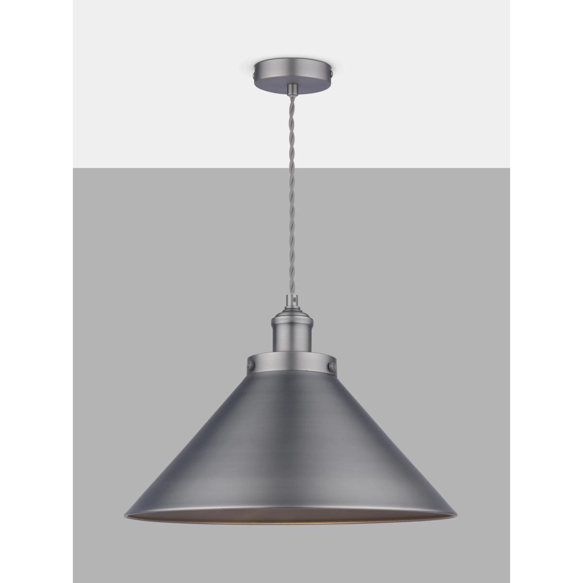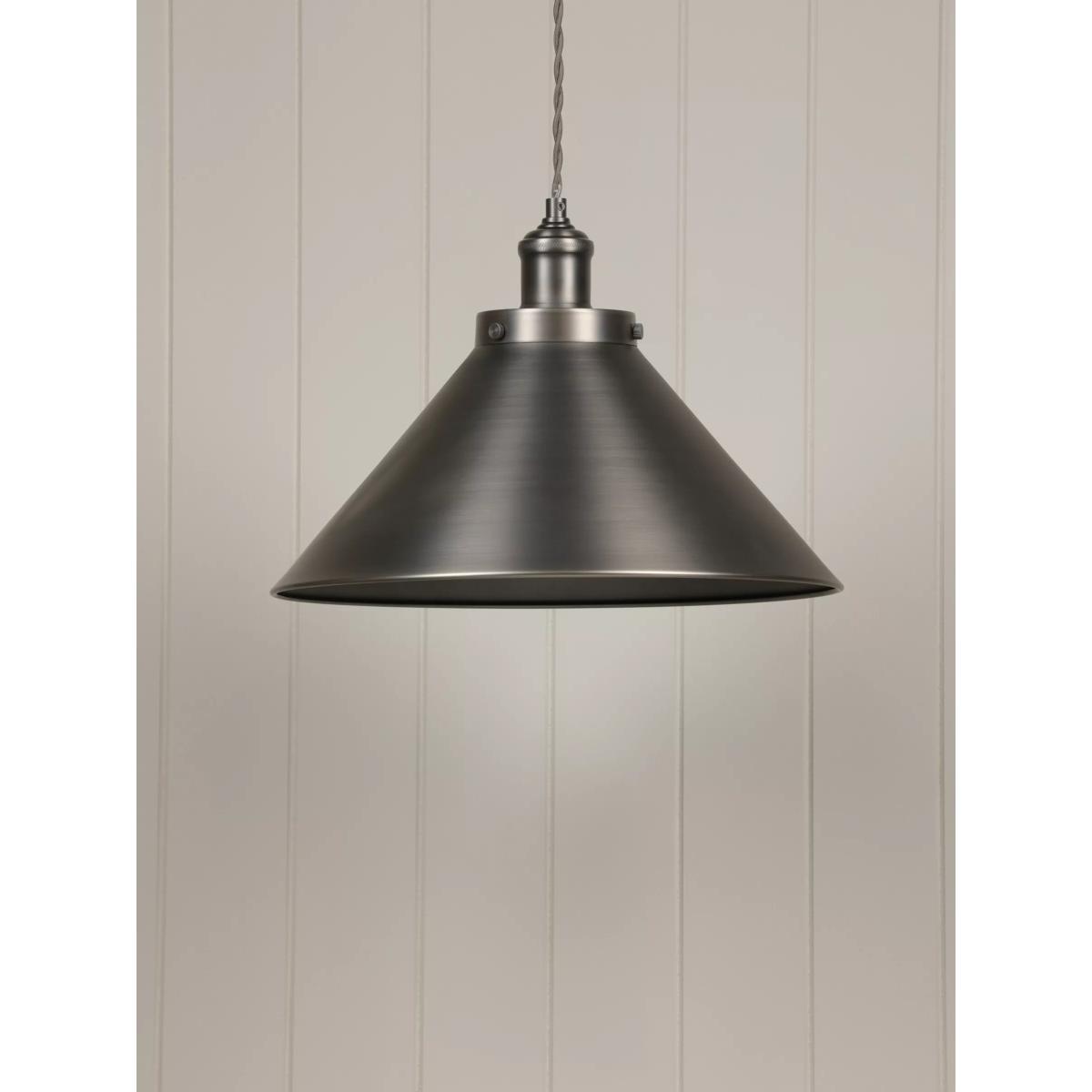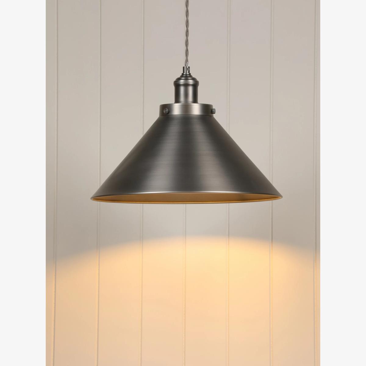 Laura Ashley’s Rufus Grande ceiling light will look superb in your kitchen or dining room, suspended over a table, or indeed above a desk in your home office area. The Rufus is a large, quality pendant with an oversized cone shade made with a neat rolled edge. The solid shade directs light downwards onto the surface below, not only creating great illumination but enhancing the atmosphere when surrounding lights are turned down. Paired with a braided fabric cord for a vintage character look. You can adjust the height to suit when it is installed therefore this ceiling light is also suitable for higher ceilings. Bulb not included.