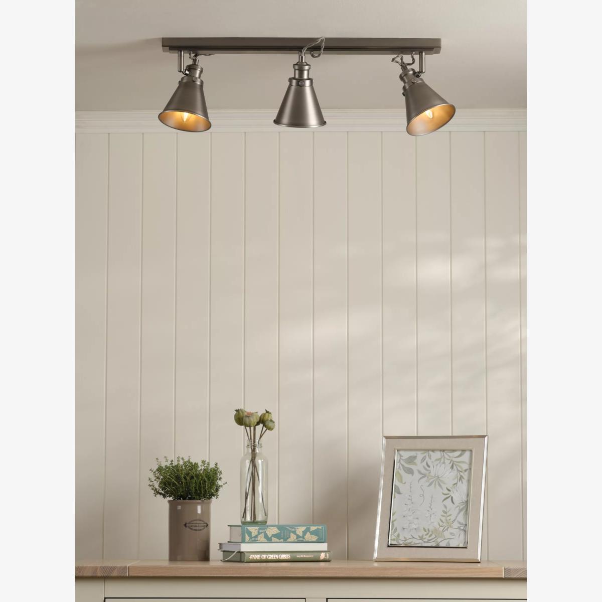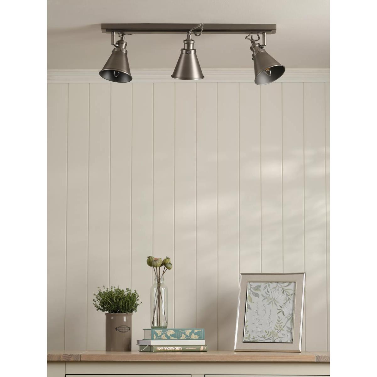 I’m a big fan of this nickel-finished spotlight bar for its clean lines and adjustable heads - it’s a quick way to add task lighting without cluttering the ceiling. It works particularly well in modern-country kitchens, home offices or utility rooms where you need directional light. To style it, aim two heads at key work areas (like your prep island or desk) and the third towards a feature wall or artwork. Pair with warm-white LED bulbs to soften the metal finish, and keep surrounding décor simple - think neutral wall panelling or pale cabinetry - so the lights really stand out.