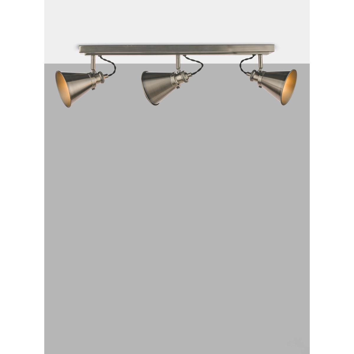 Laura Ashley’s Rufus triple bar spotlight has a superior finish that will look superb in your kitchen or dining room. Fit above your main work surface area. The Rufus is a quality ceiling light with three adjustable cone shades made with neat rolled edges sitting on a slim, rectangular ceiling plate. The solid shades can be tilted and turned to direct light exactly where you want it, creating great illumination. Paired with a braided fabric cord for a vintage character look. Bulbs not included.