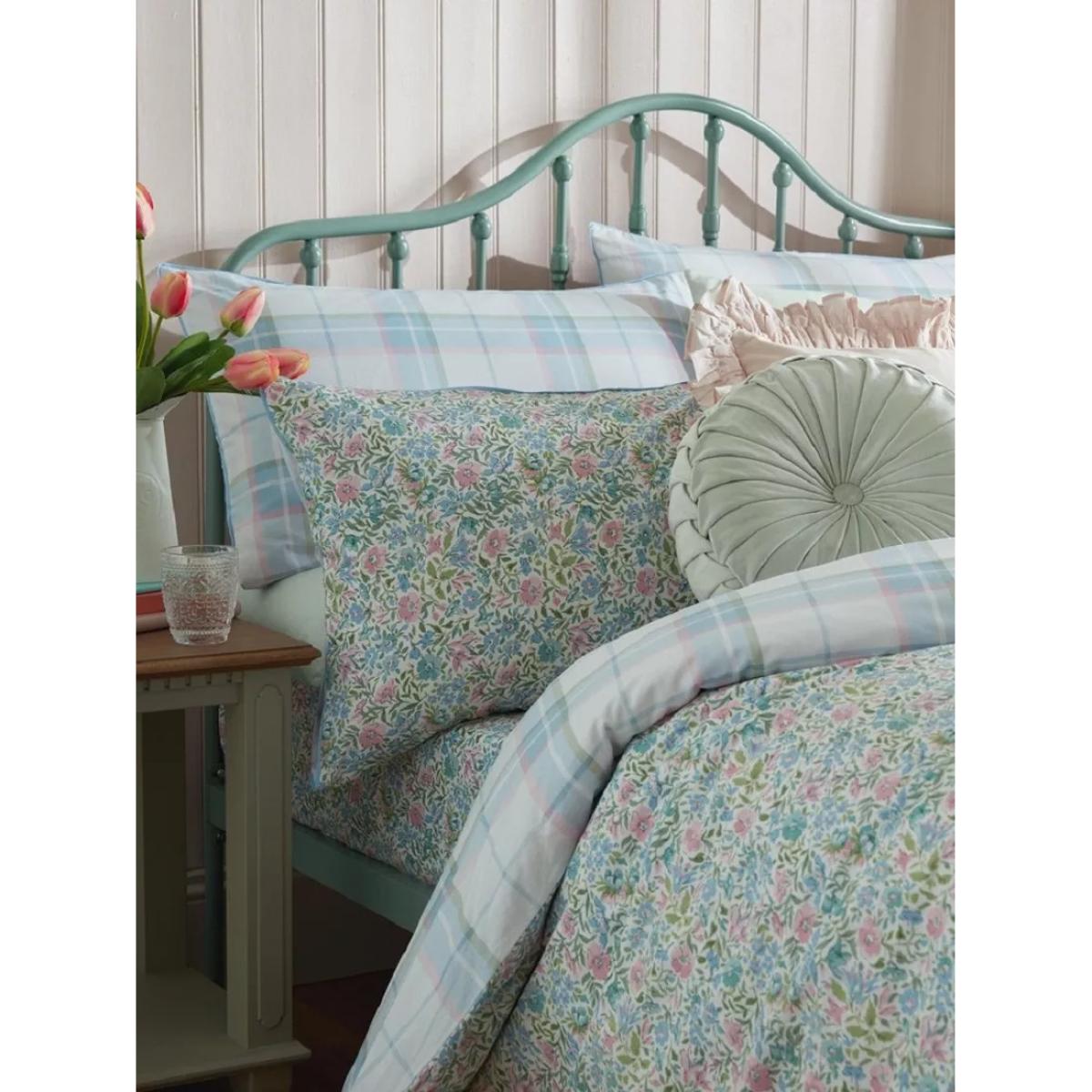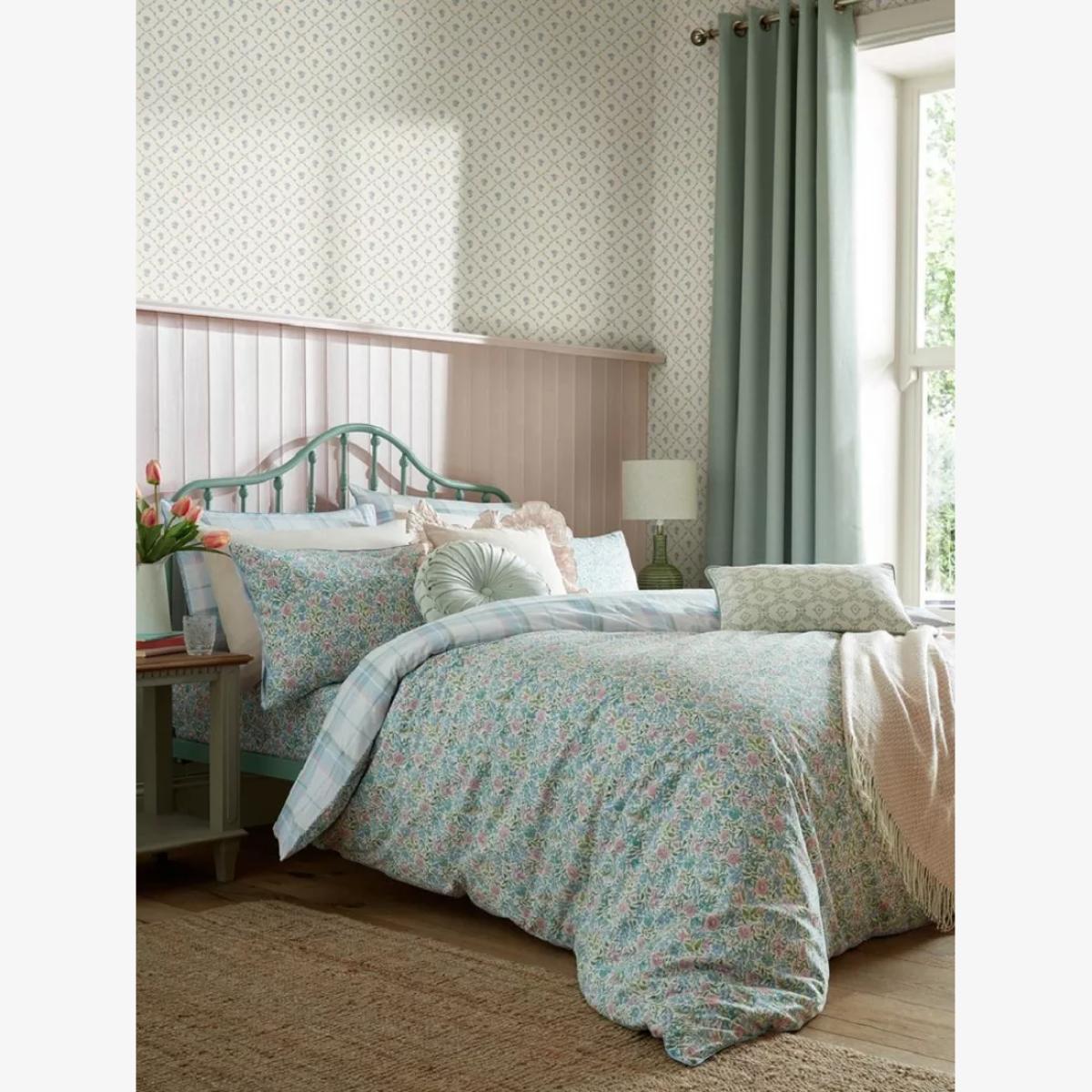 Charming and playful, Sherston is a beautiful dense floral design featuring poppy and fuchsia like flowers. Held in the Laura Ashley archive, this gouache style print is now paired with a co-ordinating check reverse on a 100% washed cotton base, with a soft blue flat pipe to present a relaxed and modern duvet cover set. The single set comes with 1x standard pillowcase. All other sizes come with 2x standard pillowcases. Bedding sizes To fit duvet/pillow size (cm): Standard pillowcase, L75 x W50cm Single duvet cover, L200 x W137cm Double duvet cover, L200 x W200cm King duvet cover, L220 x W230cm Super king duvet cover, L220 x W260cm