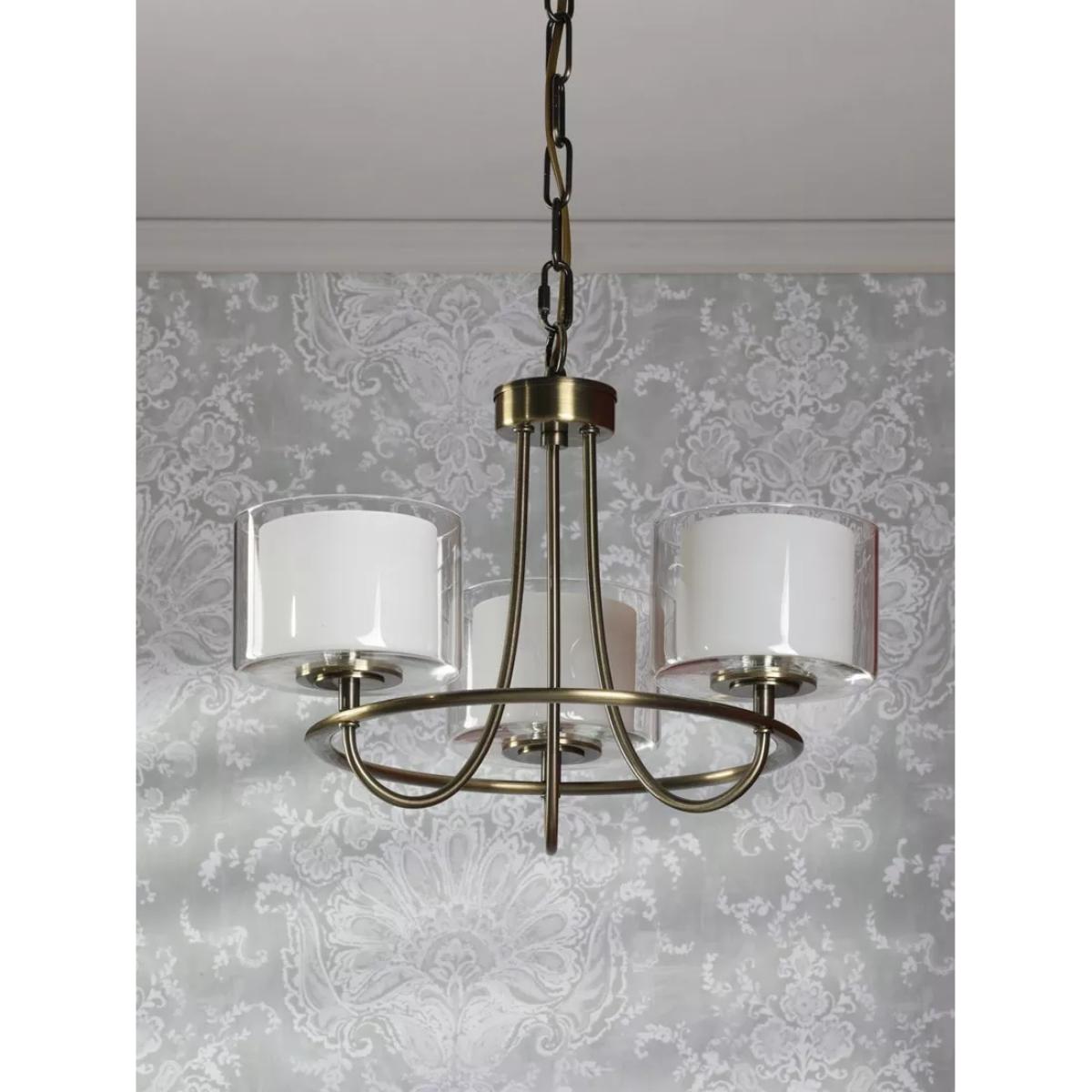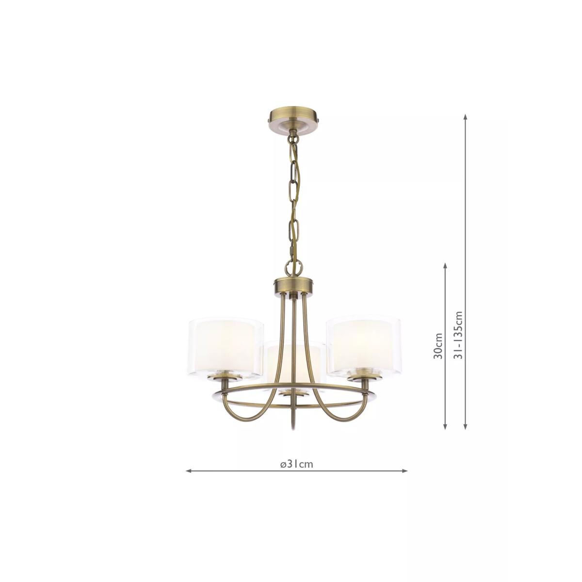 Elevate your lighting with the Laura Ashley Southwell 3 Arm Chandelier. Crafted with an antique brass finish and double-layered glass shades, it casts a warm, inviting glow that's ideal for living rooms or bedrooms. The adjustable height allows you to customise the lighting, while the layered shades create a soft, diffused effect. Part of a cohesive range, this piece can be effortlessly coordinated with other items from the Southwell lighting collection.