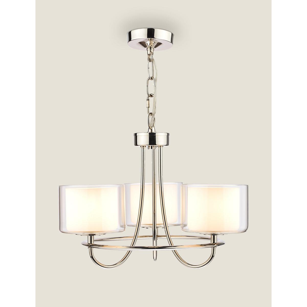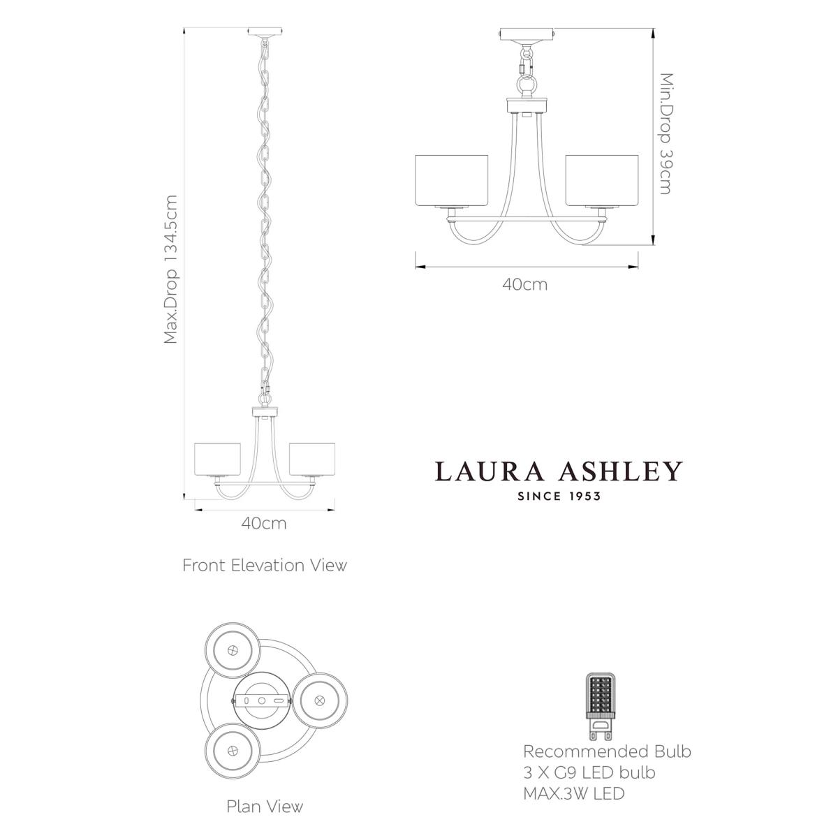 The sleek lines of this Laura Ashley light will add a sophisticated look to your interior. This ceiling pendant design features a main circular shape and three curved arms for the lamps, providing an elegant feel. The metal frame has a polished nickel finish for a modern appeal.