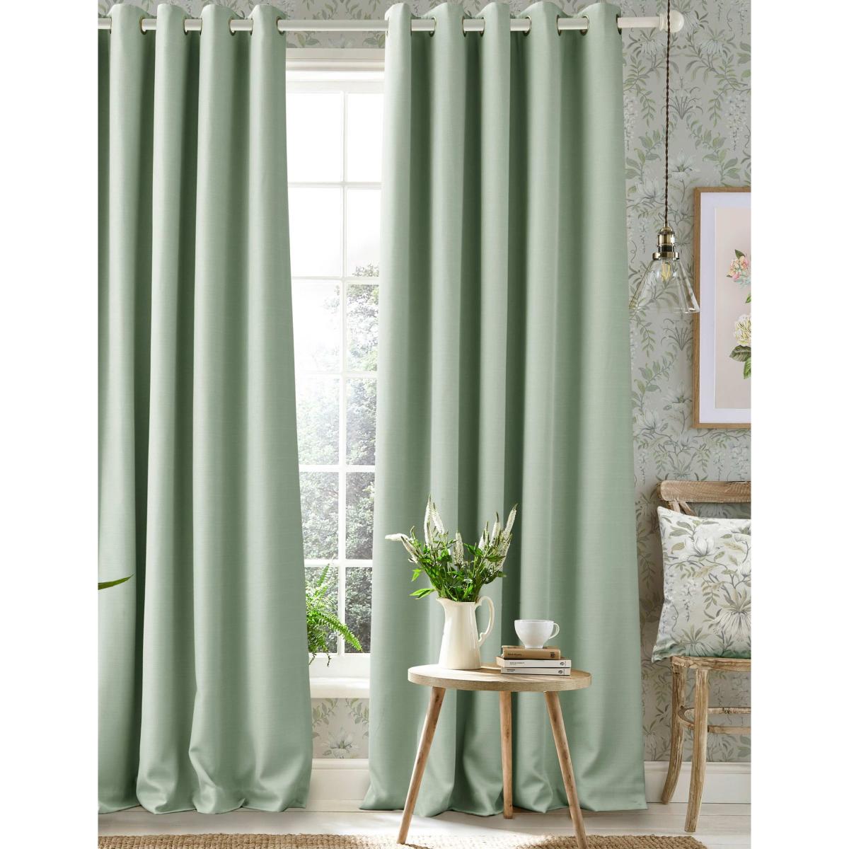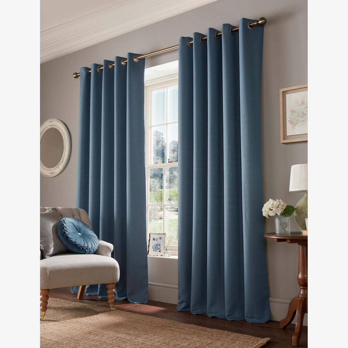 Bring a modern feel to your room with these woven-texture Stephanie curtains from Laura Ashley. They're made in a contemporary eyelet style that creates an elegant look. A blackout lining provides extra warmth and privacy while shutting out the light.