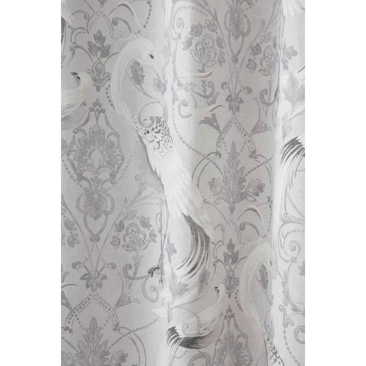 Add a sense of romantic glamour to your bedroom with the iconic Tregaron print from the Laura Ashley archive.  Beautifully entwined birds and damask motifs Sophisticated silver colouring, printed onto 100% cotton Panama. Features: 100% Cotton  50% Polyester 50% Cotton Lining Eyelet curtains Fully Lined Care Instructions: Dry Clean Only Please note All screens vary in colour reproduction and whilst every effort has been made to display the colour as accurately as possible it is for guidance only.