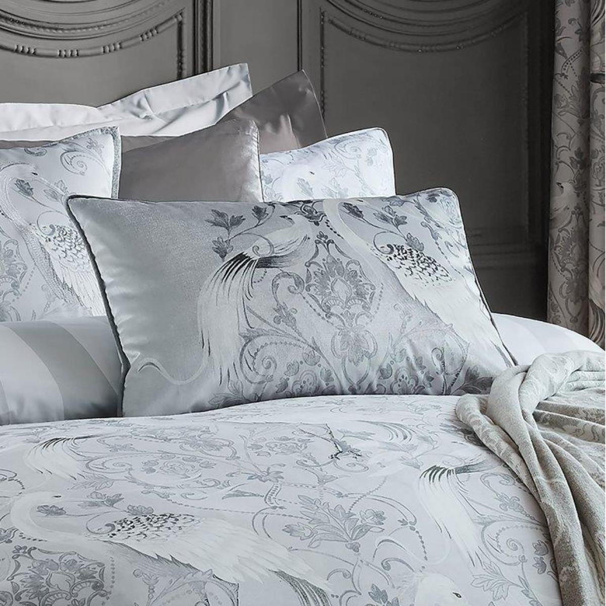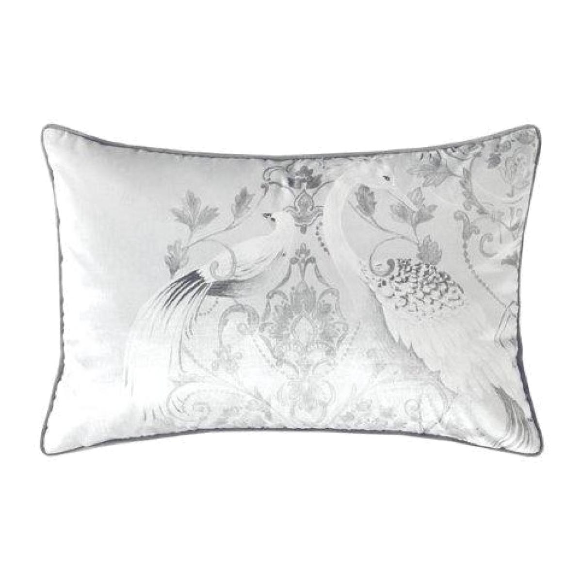 Add a touch of glamour to your home with Laura Ashley's new Tregaron design.  Hand painted birds entwined in delicate damasks are printed onto luxurious velvet.  This cushion is finished with a velvet piping and reverse and comes with a feather filled pad. Available size: 40x60cm Aftercare: Dry Clean Only All screens vary in colour reproduction and whilst every effort has been made to display the colour as accurately as possible it is for guidance only.