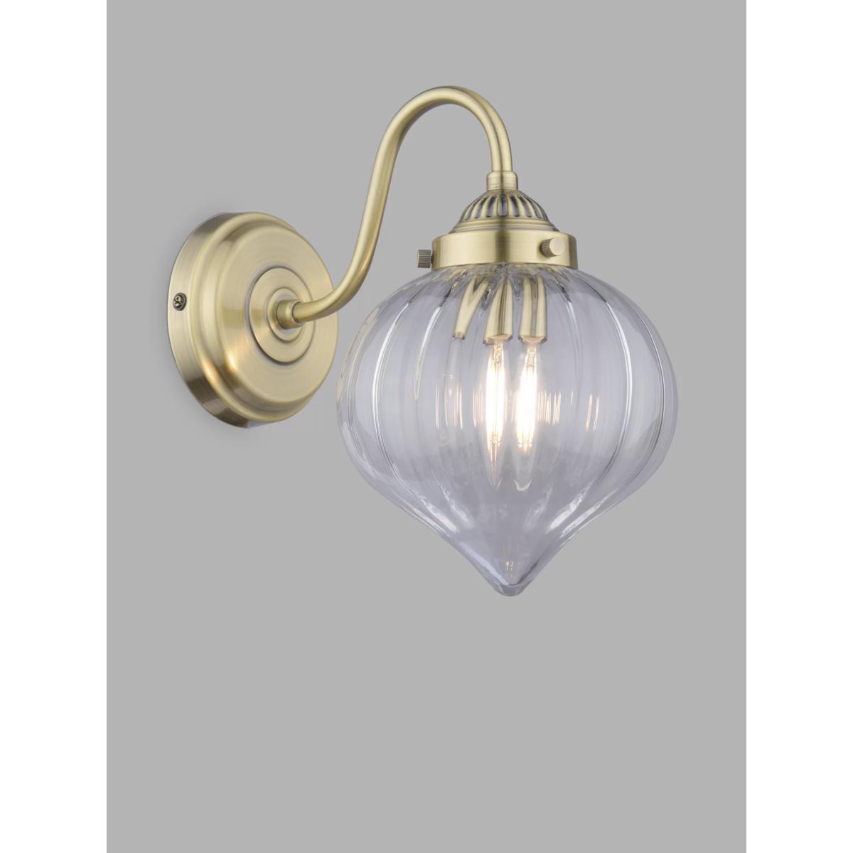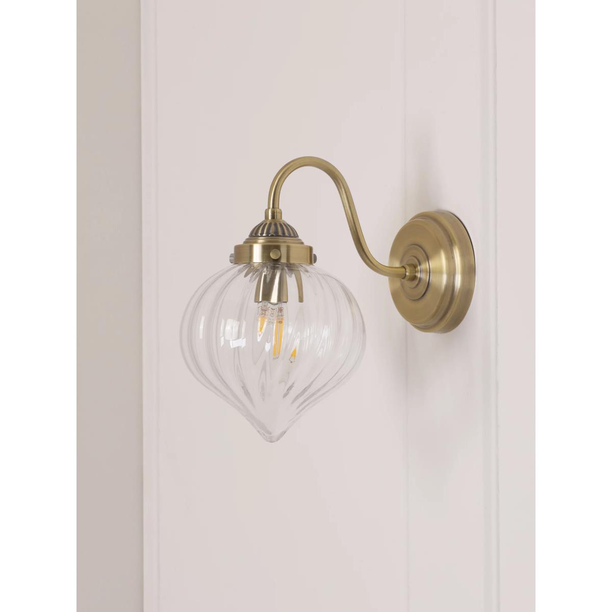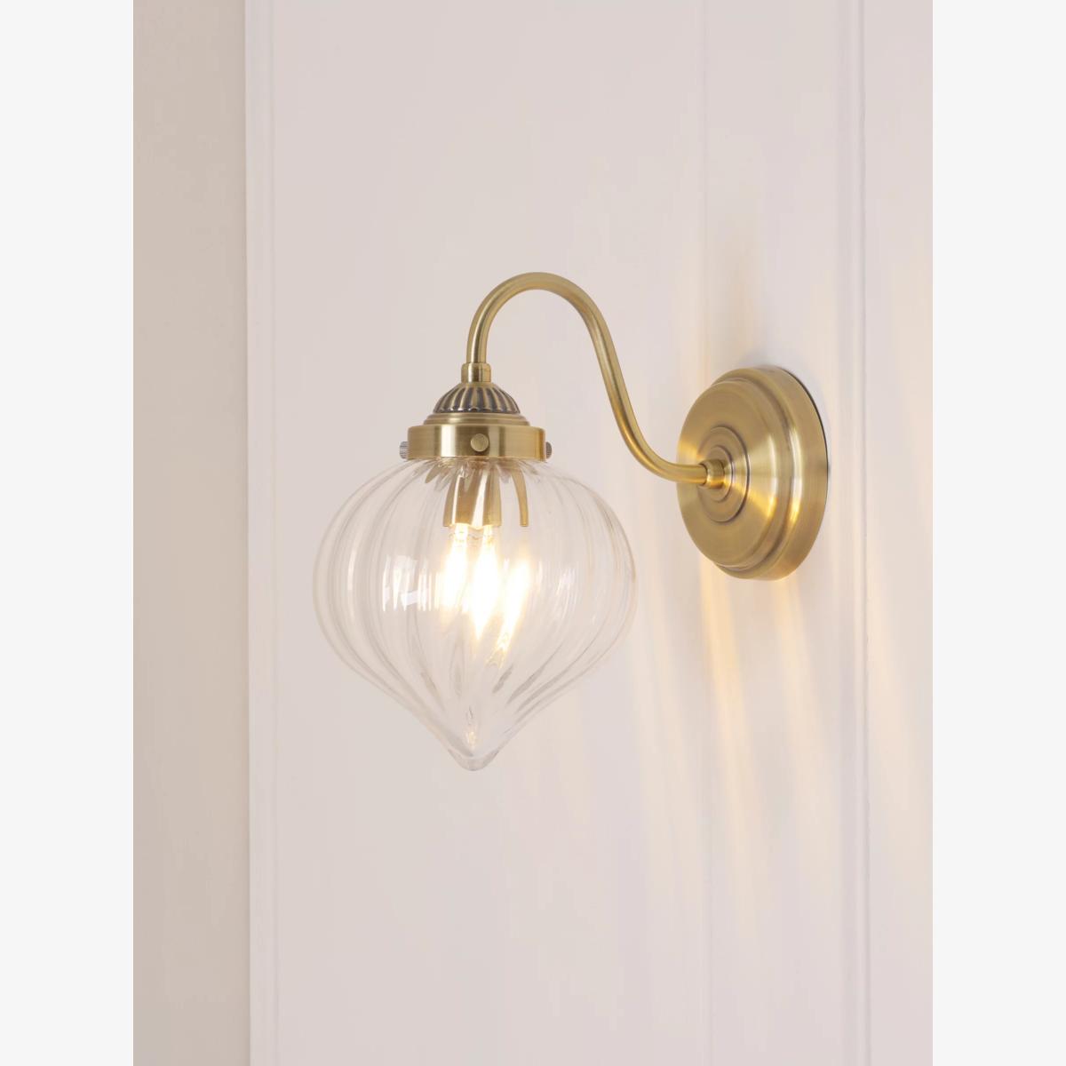 Laura Ashley’s Witham wall light is designed with a graceful swan neck. The clear glass shade has soft ribbing on the which create highlights when lit. Bulb not included.