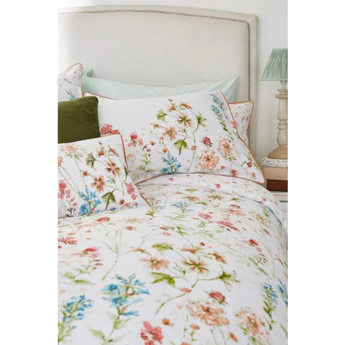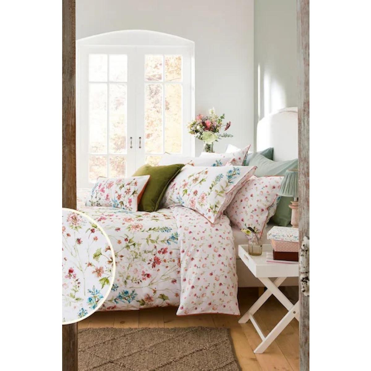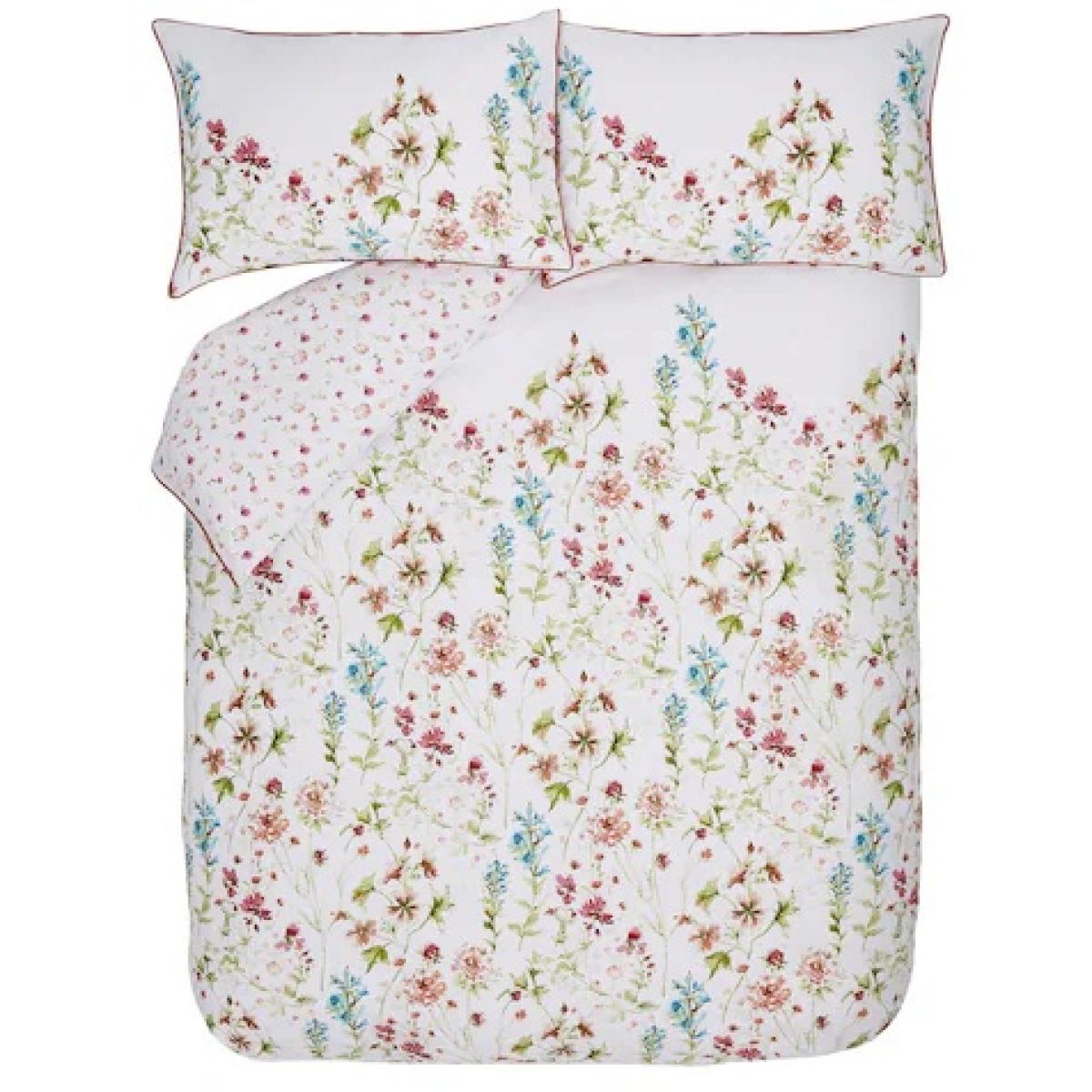 Bring a breath of fresh air to your bedroom with these 200 thread count pure cotton Laura Ashley Wild Meadow Duvet. Scattered blossoms illustrated in graceful watercolour cover the outer side, and the shades of blue, yellow, and pink, give you a range of colour options to coordinate with. The reverse side features miniatures of the print so that the pretty theme continues when the covers are pulled back. Features: 100% Cotton 200 Thread count Reversible Single duvet includes a single pillowcase Double and King duvet includes a pair of pillowcases Care instructions: Machine washable 40° C Low tumble dry Warm iron Please note All screens vary in colour reproduction and whilst every effort has been made to display the colour as accurately as possible it is for guidance only.