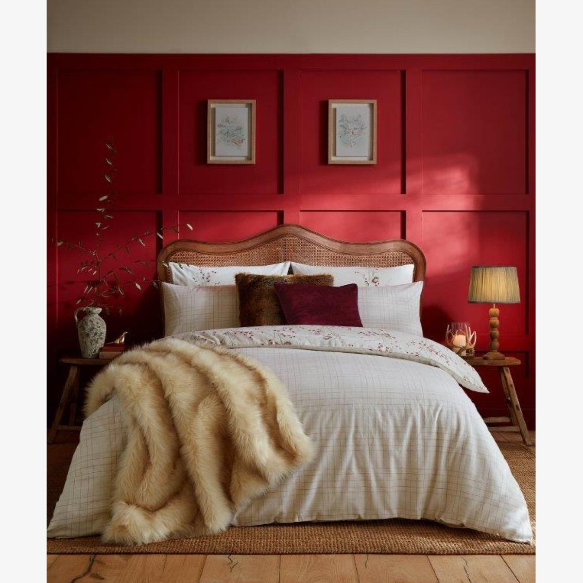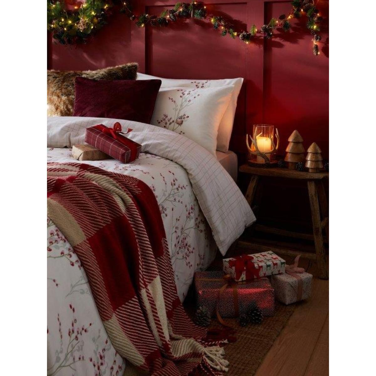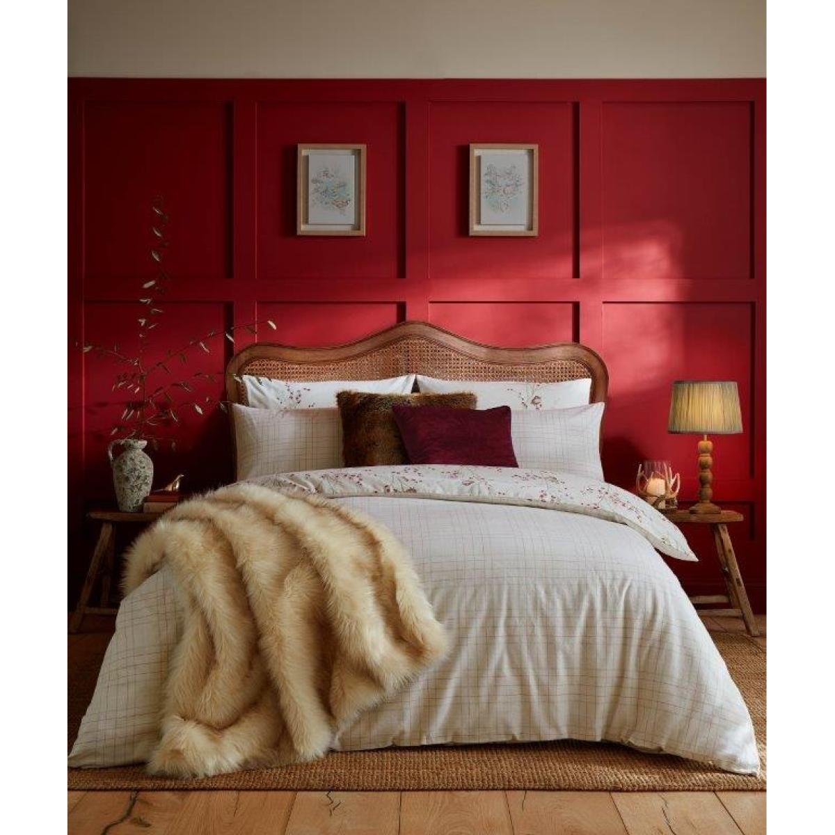 A classic Laura Ashley floral design, with a festive twist. This clean and fresh soft 100% brushed cotton Pussy willow sprig design brings a touch of the outside in. Our new Winter Pussy Willow includes the addition of a charming bird and is printed onto soft brushed cotton adding warmth and cosiness to your bed. This bedding has the addition of a sophisticated printed check reverse which means this set is fully reversible. Single - 137 x 200 cm Double - 200 x 200 cm King - 230 x 220 cm Super King - 260 x 220 cm Pillowcases - 50x75cm 100% Brushed Cotton All screens vary in colour reproduction and whilst every effort has been made to display the colour as accurately as possible it is for guidance only.