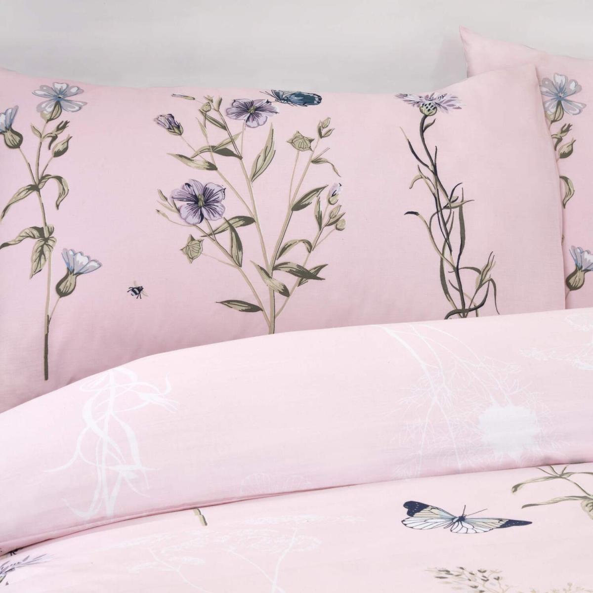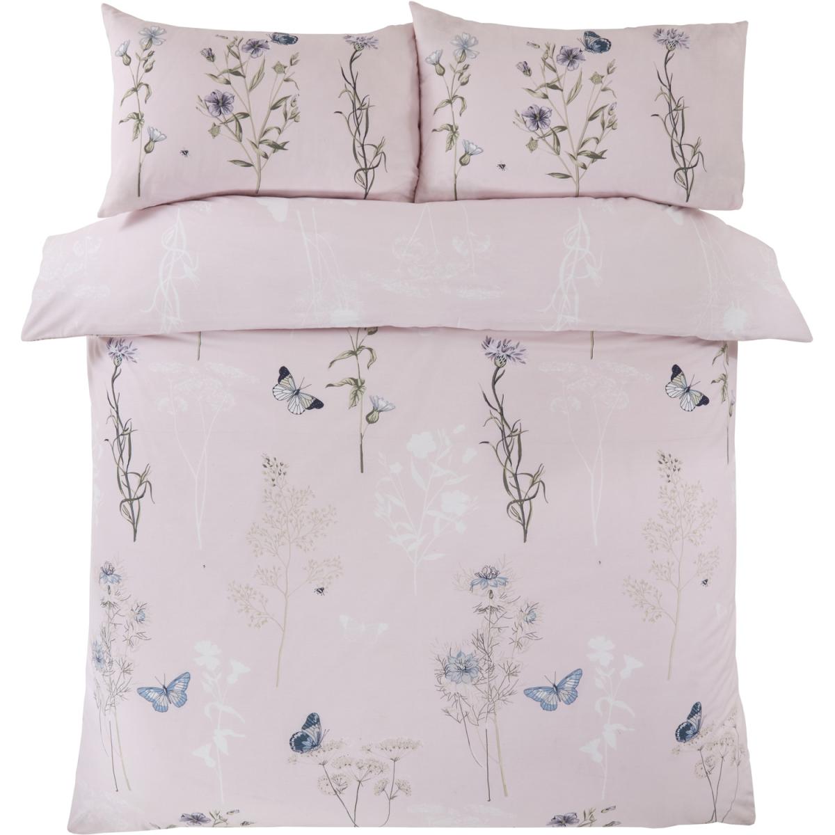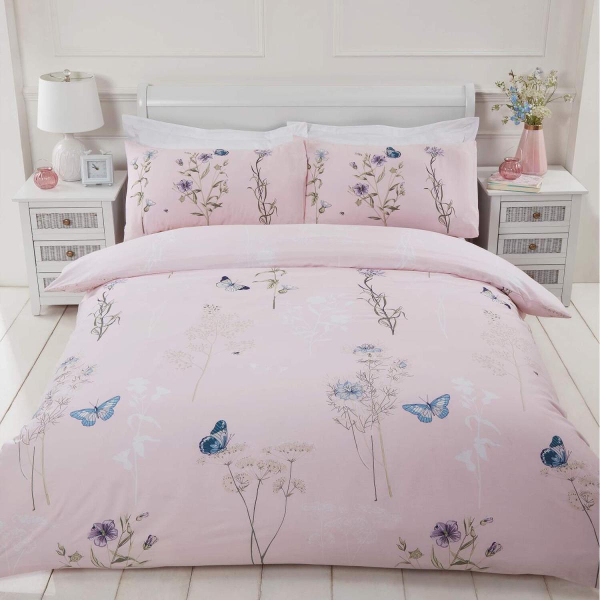 The gorgeous laura quilt cover set has a charming botanical floral stem and butterfly print on a soft pastel background.