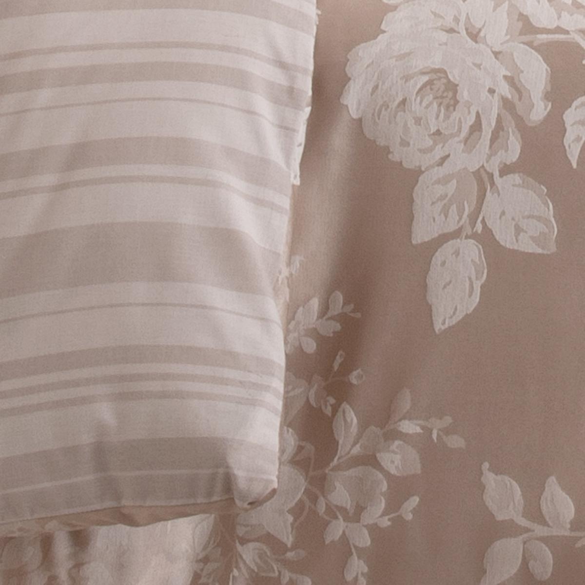 Rest in comfort with this patterned duvet cover, decorated with floral jacquard detailing on a rich cream colour base with a striped reverse. Fashioned from soft polycotton it is available in a range of sizes to match your bedding. Please note: Pillowcases are not included.
