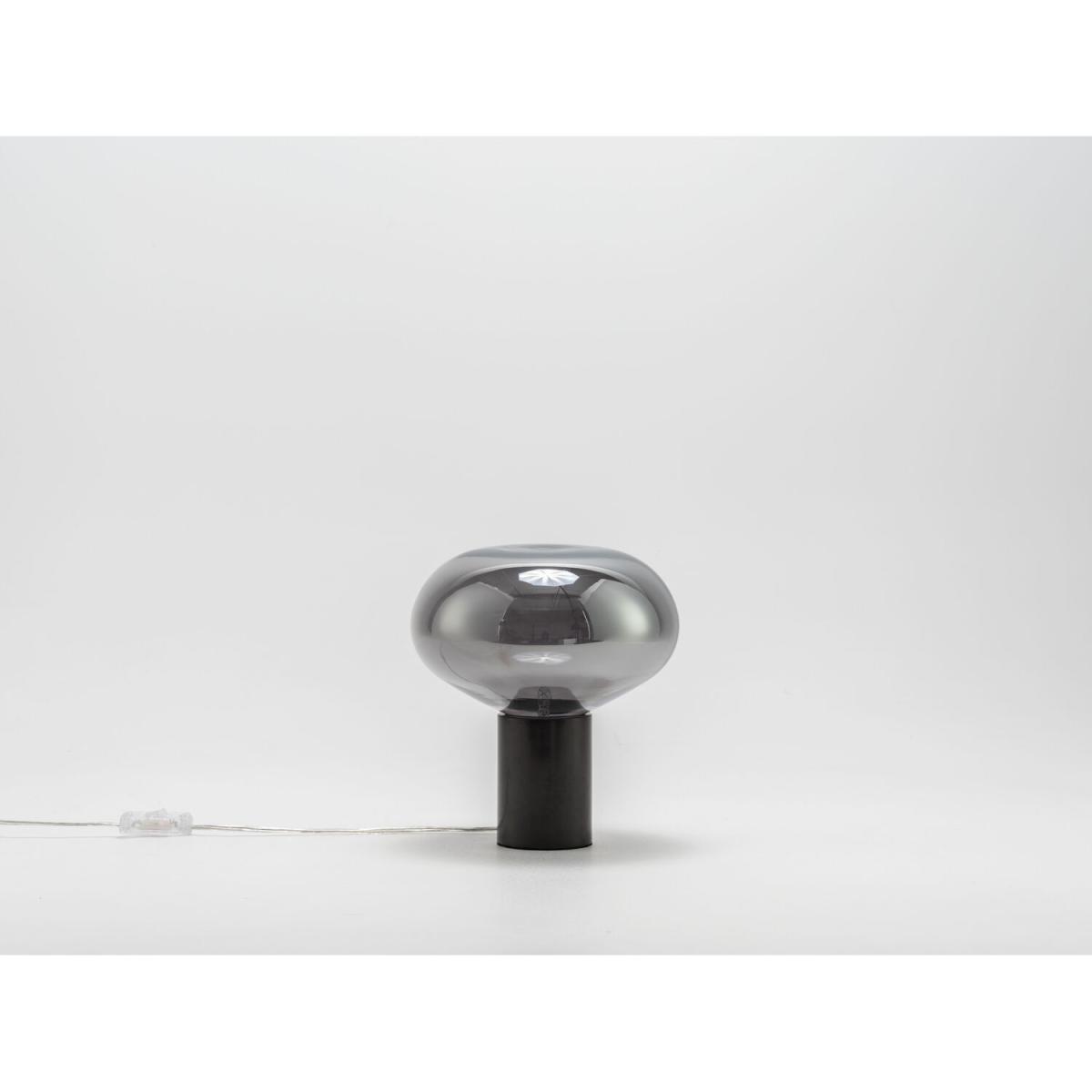 I love the unusual combination of smoked glass and marble in this lamp, which adds a modern yet sophisticated touch to any space. It's particularly versatile, working well in contemporary or minimalist interiors, but can also add a chic accent in more eclectic setups. For styling, consider placing it on a sleek desk or side table to highlight its sculptural form; pairing it with darker or neutral tones will really let the smoked glass stand out. Practical tips include using a warm LED bulb to enhance the smoky glass effect and ensure the lamp complements other materials like metals or matte finishes in the room. Overall, it's an eye-catching piece that offers both form and function with an understated elegance.
