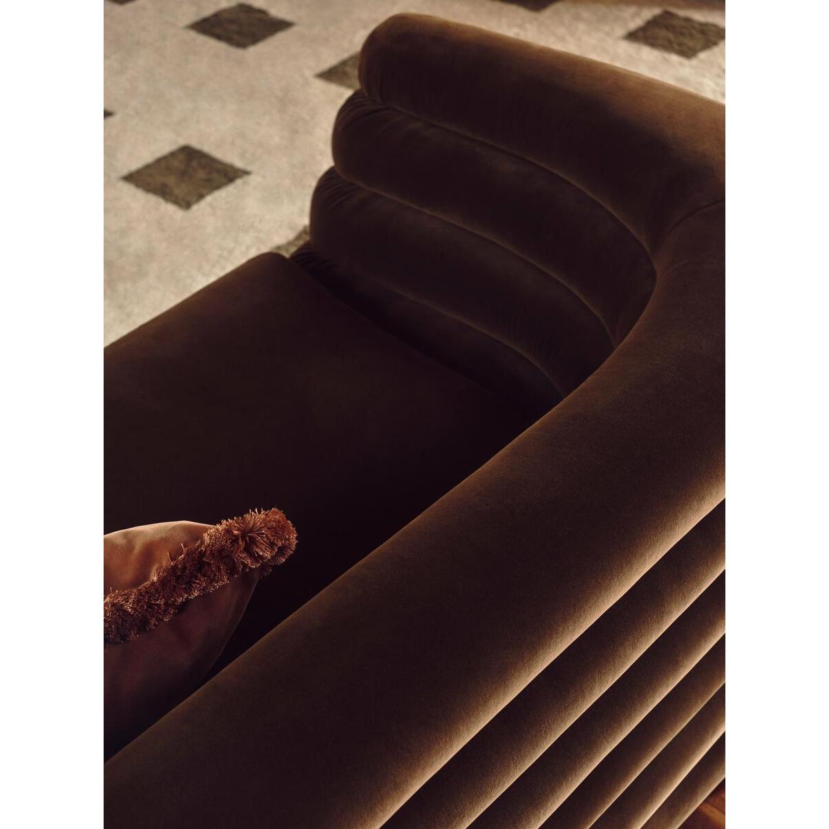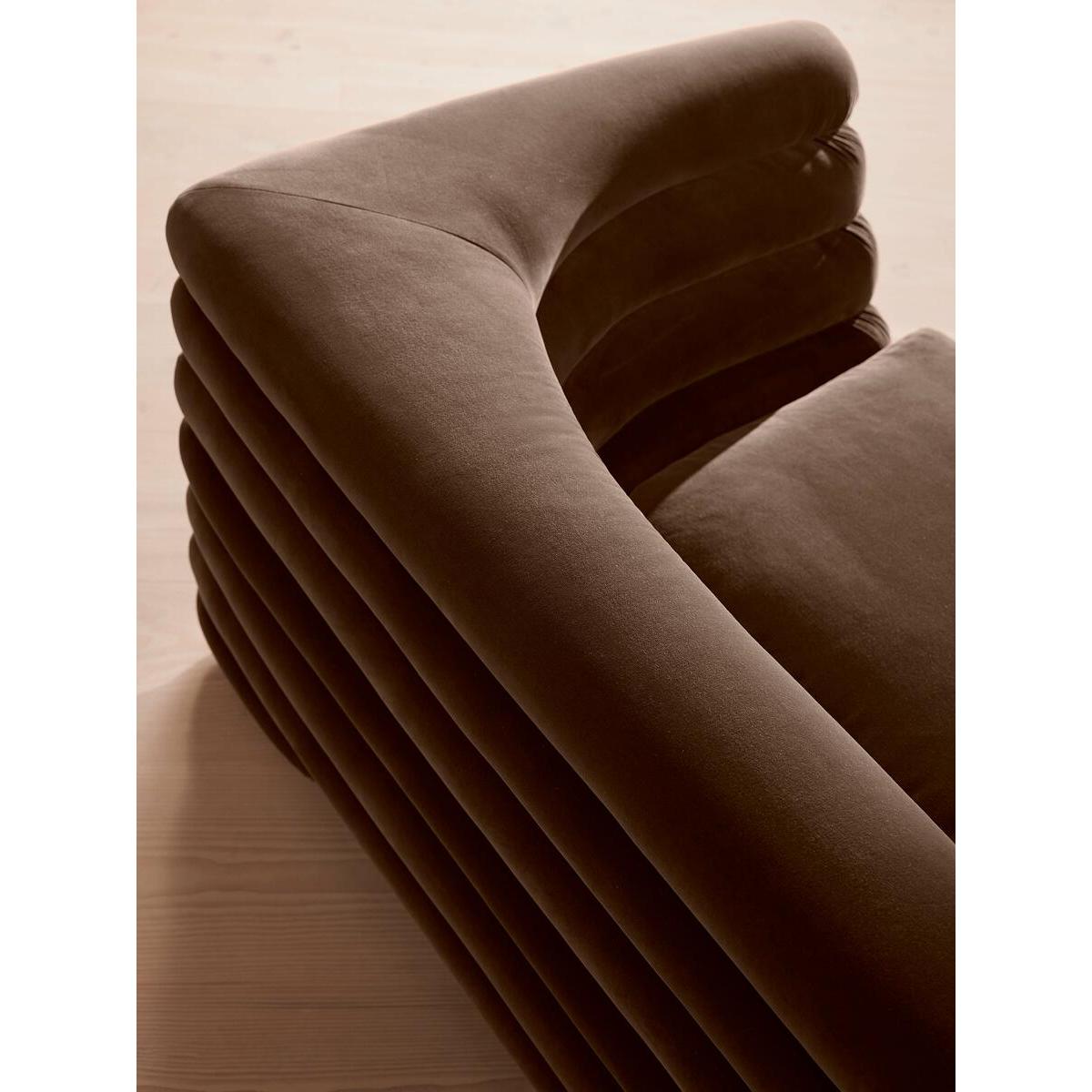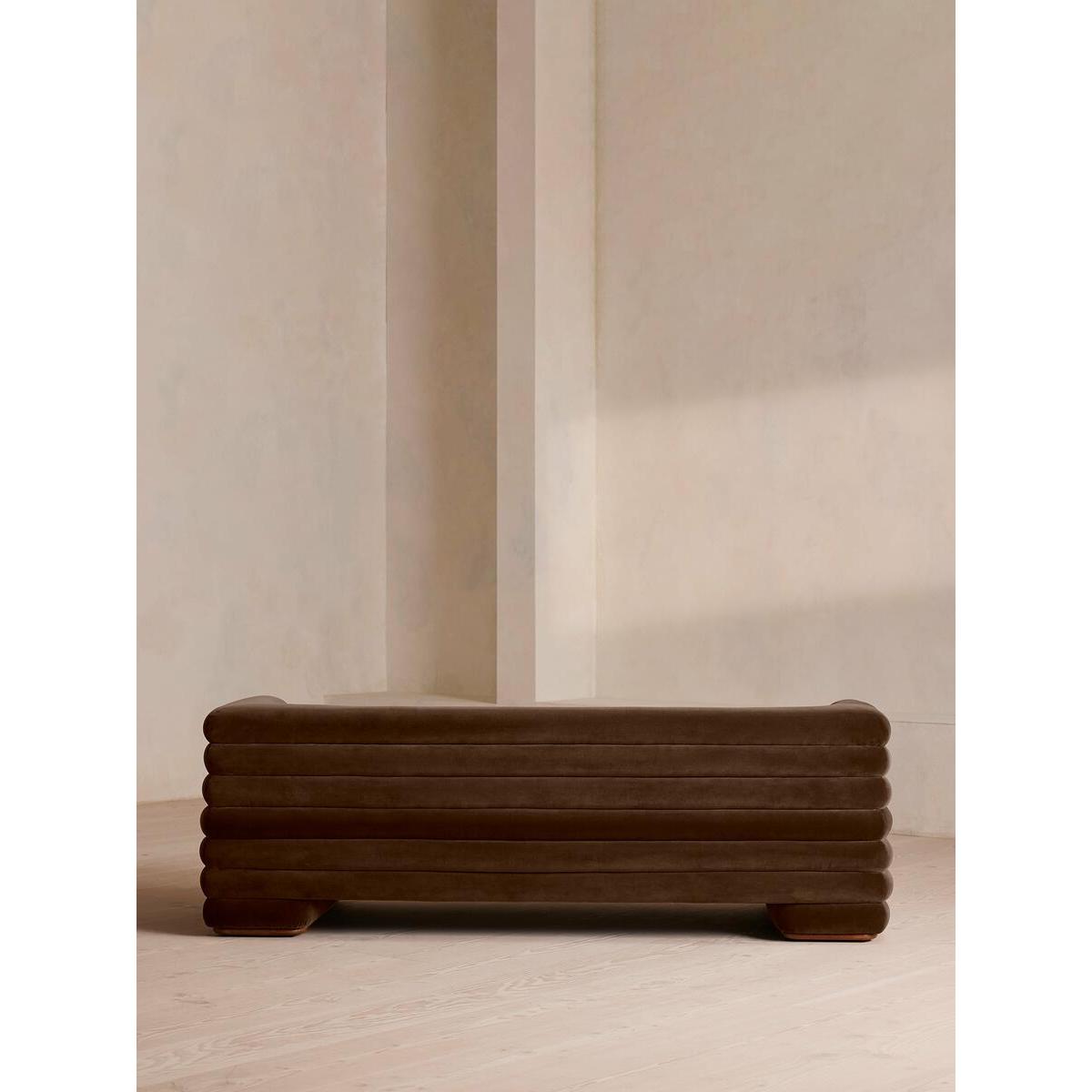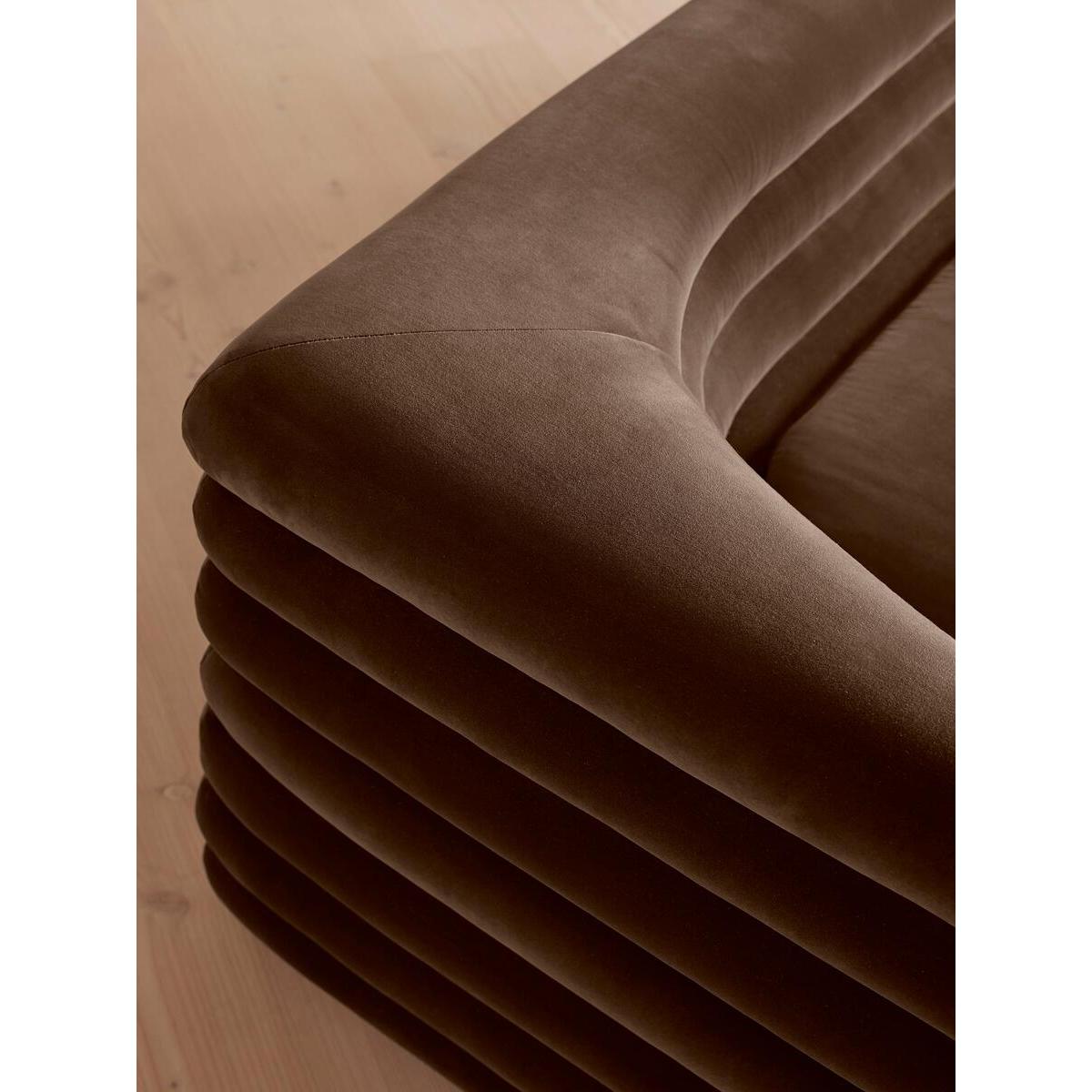 Our Laura three-seater sofa offers endless relaxation while showcasing design-led details, inspired by 180 House. Upholstered in a rich velvet fabric, its curved shape is set apart by padded sectioning, which wraps around the sofa for ergonomic comfort, with a deep sit for cosy conversations among family and friends. Curved three-seater sofa Layered padded sectioning for ergonomic comfort Deep sit Foam feather-wrapped loose cushions Reversible seat pad Upholstered in velvet Available in a range of colours Dark stained solid wood feet Inspired by 180 House