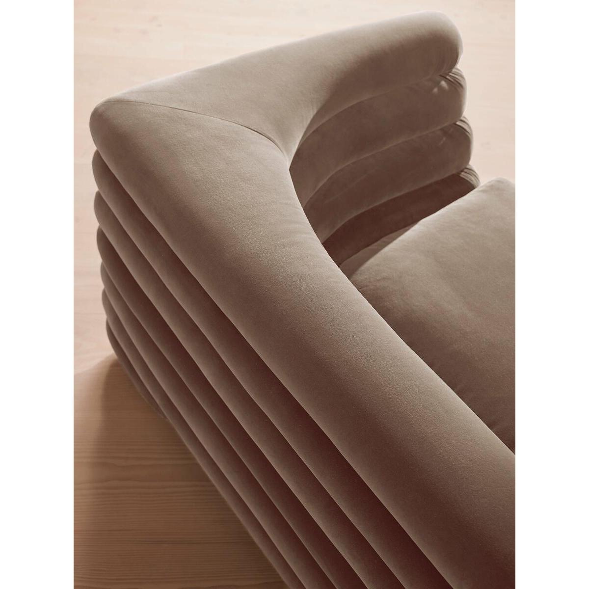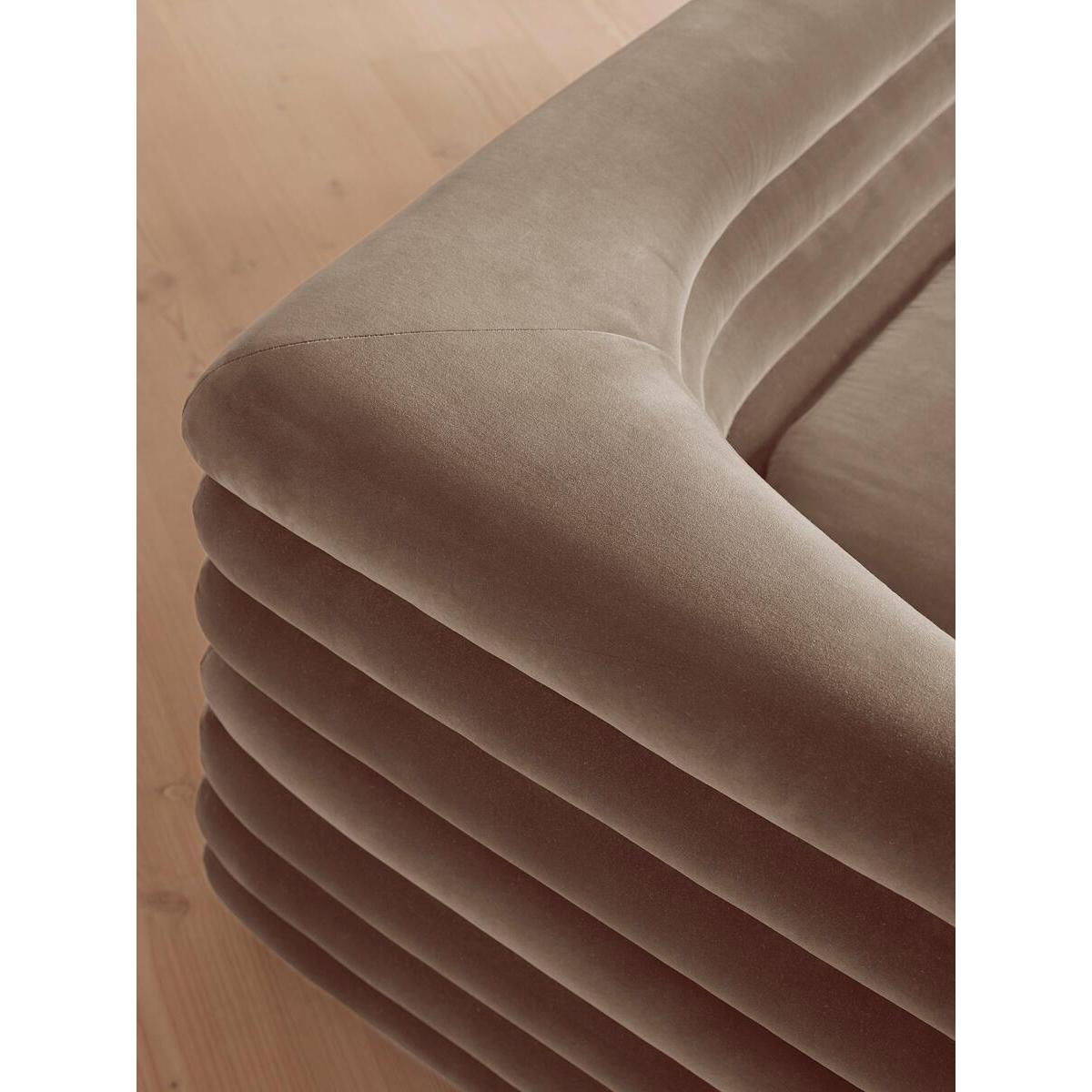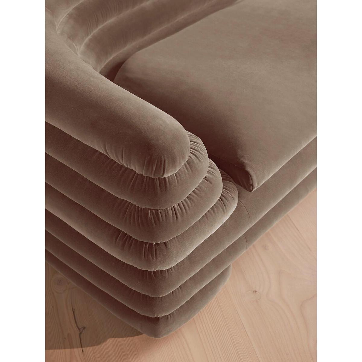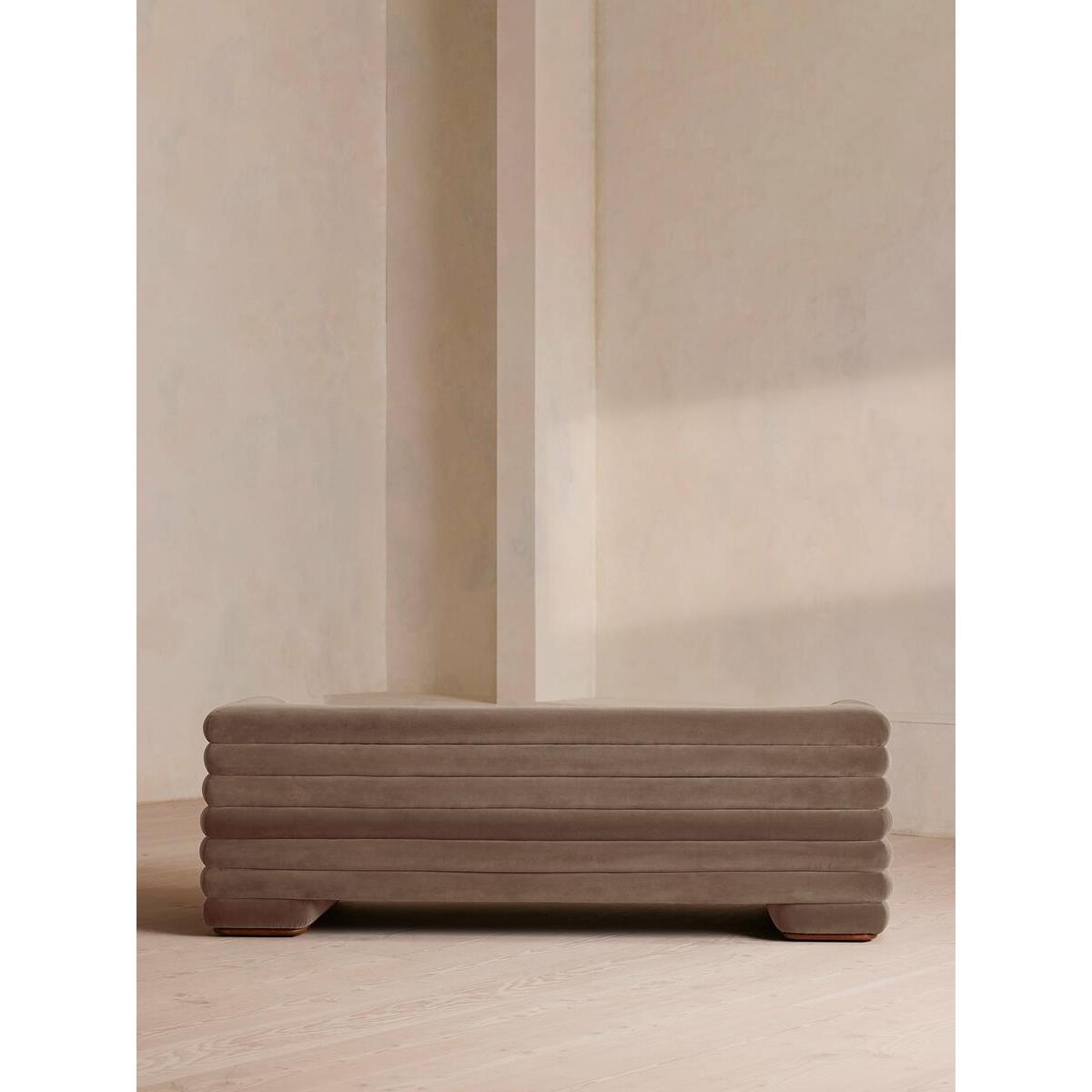 Our Laura three-seater sofa offers endless relaxation while showcasing design-led details, inspired by 180 House. Upholstered in a rich velvet fabric, its curved shape is set apart by padded sectioning, which wraps around the sofa for ergonomic comfort, with a deep sit for cosy conversations among family and friends. Curved three-seater sofa Layered padded sectioning for ergonomic comfort Deep sit Foam feather-wrapped loose cushions Reversible seat pad Upholstered in velvet Available in a range of colours Dark stained solid wood feet Inspired by 180 House