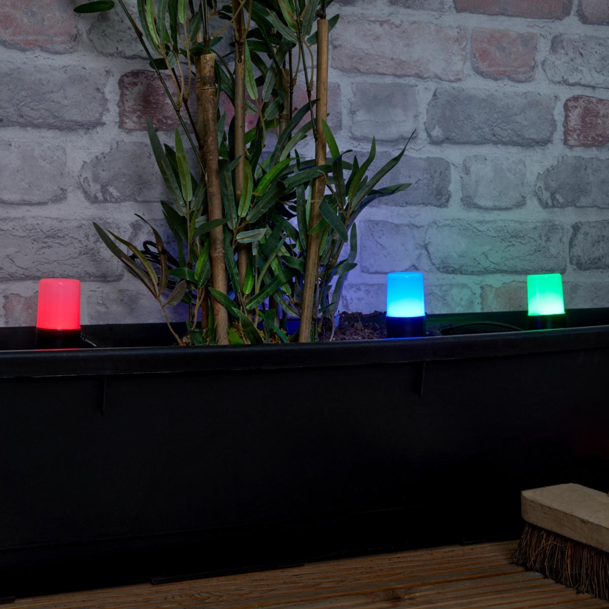 Brighten up your patio, decking, or outdoor seating area with the Pack of 4 Laurel Colour Changing Solar Power Spike Light Kit from Litecraft. These LED solar lights are supplied with an IR remote control and can be deck-mounted or spike mounted, allowing them to be set to your preference. These spike lights are solar powered, meaning they are energy-efficient and you do not need to wire to your home electrics, as well as being IP65 rated for extra durability against outdoor weather conditions.