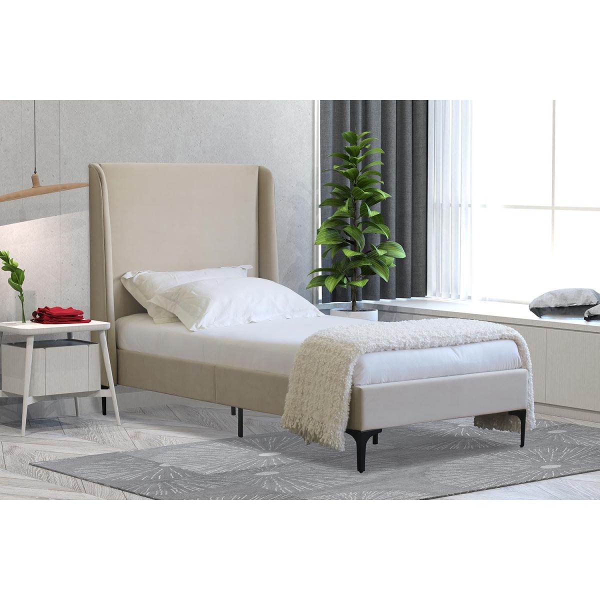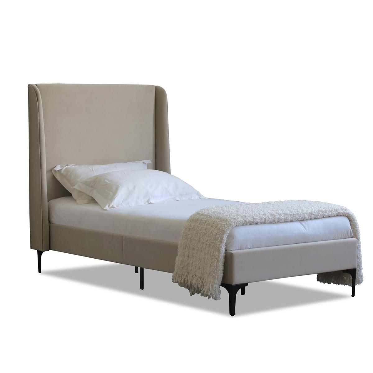 The Lauren Bed is an elegant and luxurious selection for your bedroom. The modern bed frame has a high headboard and is upholstered in a cream fabric to give it a bright and comfortable feel. This bed features slim black legs to create a modern contrast and features sprung wood slats for ultimate comfort. This bed will look gorgeous in any room, thanks to its versatile design.
