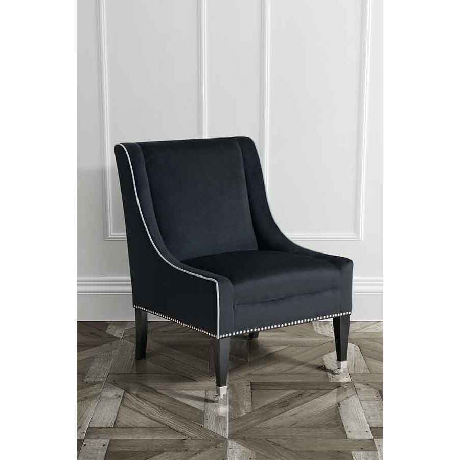 This spectacular seat has been designed and developed by our in-house team in the United Kingdom. A handsome and supremely comfortable chair which looks magnificent with its gleaming chrome details and luxurious velvet finish. Perfectly scaled for use in reception areas, living rooms and bedrooms. A timeless, elegant and unforgettable design. Exclusive to MY FURNITURE. Minor assembly required (attachment of legs -aprox. 10 minutes)