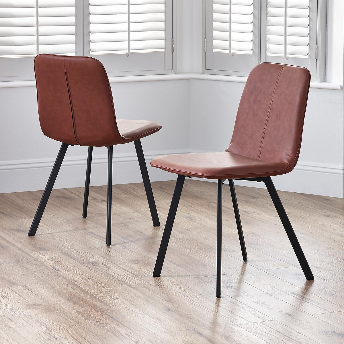 The Laurence dining chairs offer a minimalistic design that blends seamlessly with various interior styles. Finished in antique style faux leather, these chairs feature a curved design that provides both comfort and aesthetic appeal. Product Details • Set of 2 • Rounded back • Matte faux leather upholstery • Stitch seam detail • Flat angular metal legs • Assembly required • Fixings included • 12 month manufacterers guarantee. Product Composition - 90% Pu &10% Metal. Product Dimensions - 60 cm x45 cm x86 cm , Weight - 11 KGSeat height - 48.5 cm. Back height - 38 cm Package Dimensions - 62 cm x 59 cm x 51 cm, Weight 14 kg. Please note: this product cannot be be delivered to all Offshore Islands Northern Ireland or Republic of Ireland. This product will be dispatched by one of our trusted suppliers. You’ll be contacted by their selected courier about your delivery.