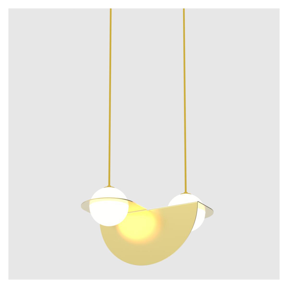 The Laurent 01 Suspension Light by Lambert and Fils is crafted with two beautifully balanced hand-blown glass spheres for a captivating emanation. A distillation of the circle, the Laurent 01 Suspension Light delicately suspends two mouth-blown opaline glass orbs in a fine semi-circular frame, which is available in a choice of colours to allow it to adapt to your space. Effortlessly suspended from a nylon wire in an assortment of finishes, the Laurent 01 Suspension Light showcases inspiration from the Art Deco movement with a bold yet rounded silhouette that is sure to make a striking centrepiece, and can be displayed with a partner piece from the Laurent collection. Lambert and Fils is a Montreal-based lighting design studio, founded in 2010 by Samuel Lambert, who expanded on his previous career in visual arts to focus on design and craftsmanship. Drawing inspiration from art, design and architecture history, Lambert and Fils create sophisticated, enchanting lights that are designed, manufactured and assembled in Montreal. Requires 2 x Max 4.5w Frosted G9 LED bulb (included).