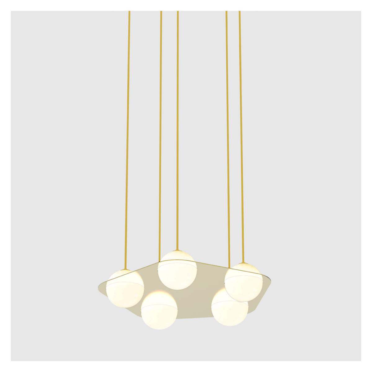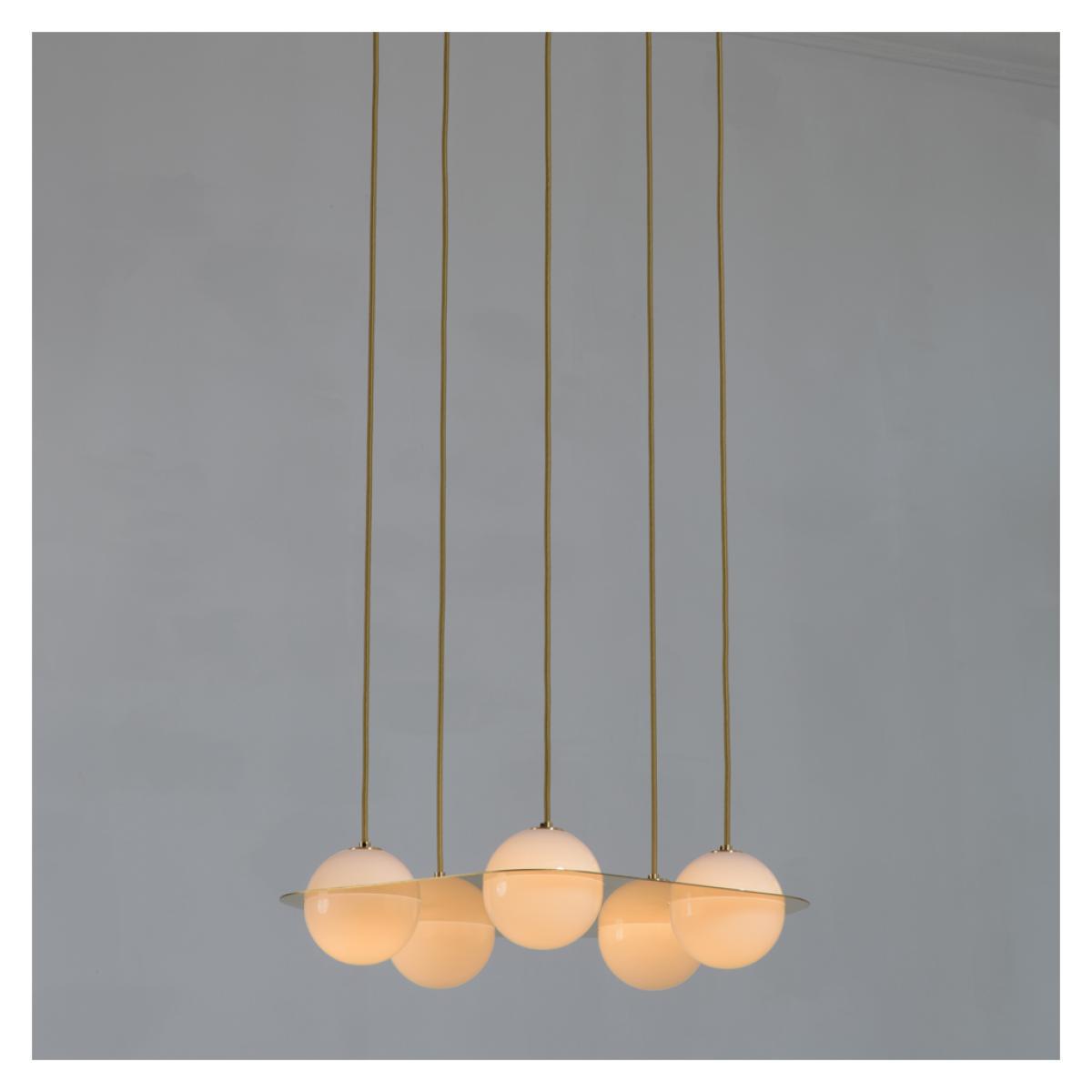 The Laurent 04 Suspension Light by Lambert and Fils is crafted with five beautifully balanced hand-blown glass spheres for a dynamic emanation. A beautiful hexagonal form, the Laurent 04 Suspension Light delicately suspends five mouth-blown opaline glass orbs within a fine plate frame, which is available in a choice of colours to allow it to adapt to your space, and can also be displayed with a partner piece from the Laurent collection. Effortlessly suspended from a nylon wire in an assortment of finishes, the Laurent 04 Suspension Light showcases inspiration from the Art Deco movement with a bold yet rounded silhouette that is sure to make a striking centrepiece. Lambert and Fils is a Montreal-based lighting design studio, founded in 2010 by Samuel Lambert, who expanded on his previous career in visual arts to focus on design and craftsmanship. Drawing inspiration from art, design and architecture history, Lambert and Fils create sophisticated, enchanting lights that are designed, manufactured and assembled in Montreal. Requires 5 x Max 4.5w Frosted G9 LED bulb (included).
