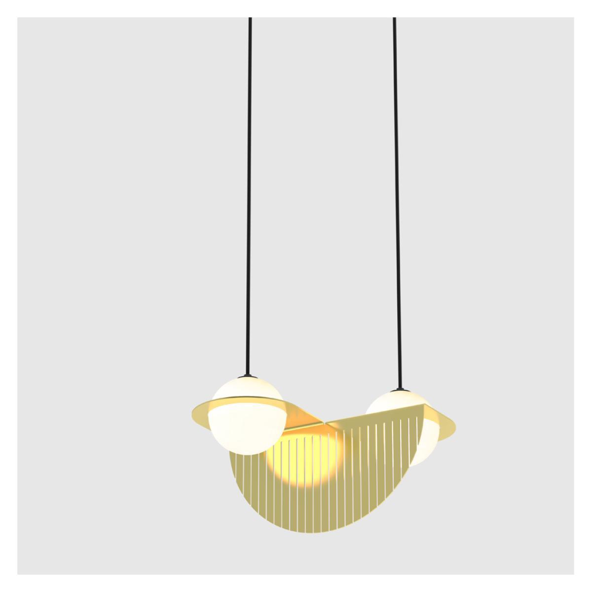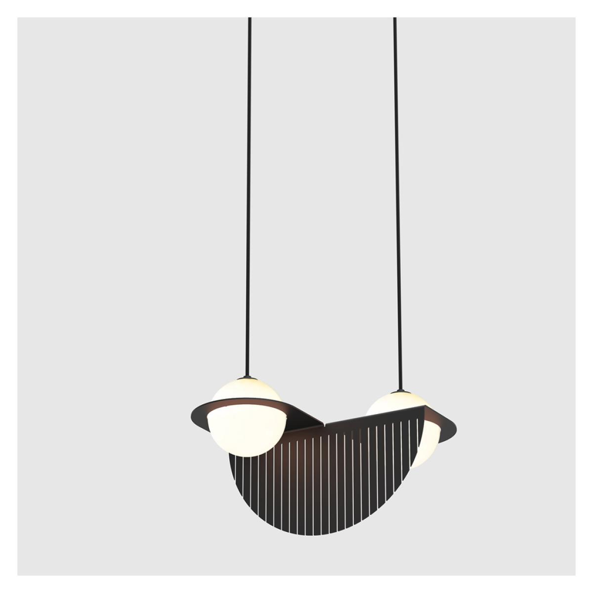 Exclusively available at The Conran Shop, the Laurent 09 Suspension Light by Lambert and Fils is crafted with two beautifully balanced hand-blown glass spheres for a captivating emanation. A distillation of the circle, the Laurent 09 Suspension Light delicately suspends two mouth-blown opaline glass orbs in a fine cut-out semi-circular frame, which is available in a choice of colours to allow it to adapt to your space. Effortlessly suspended from a nylon wire in an assortment of finishes, the Laurent 09 Suspension Light showcases inspiration from the Art Deco movement with a bold yet rounded silhouette that is sure to make a striking centrepiece, and can be displayed with a partner piece from the Laurent collection. Lambert and Fils is a Montreal-based lighting design studio, founded in 2010 by Samuel Lambert, who expanded on his previous career in visual arts to focus on design and craftsmanship. Drawing inspiration from art, design and architecture history, Lambert and Fils create sophisticated, enchanting lights that are designed, manufactured and assembled in Montreal. Requires 2 x Max 4.5w Frosted G9 LED bulb (included).