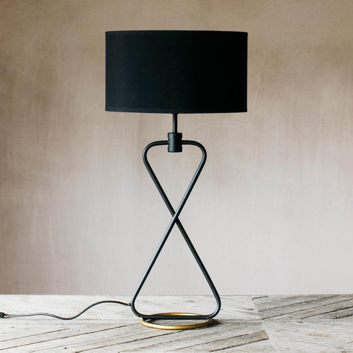 A seamless silhouette crafted from iron, powder-coated in black and perched on a perfect gold circle, top this table lamp with one of our grey cotton lamp shades for monochromatic minimalism.