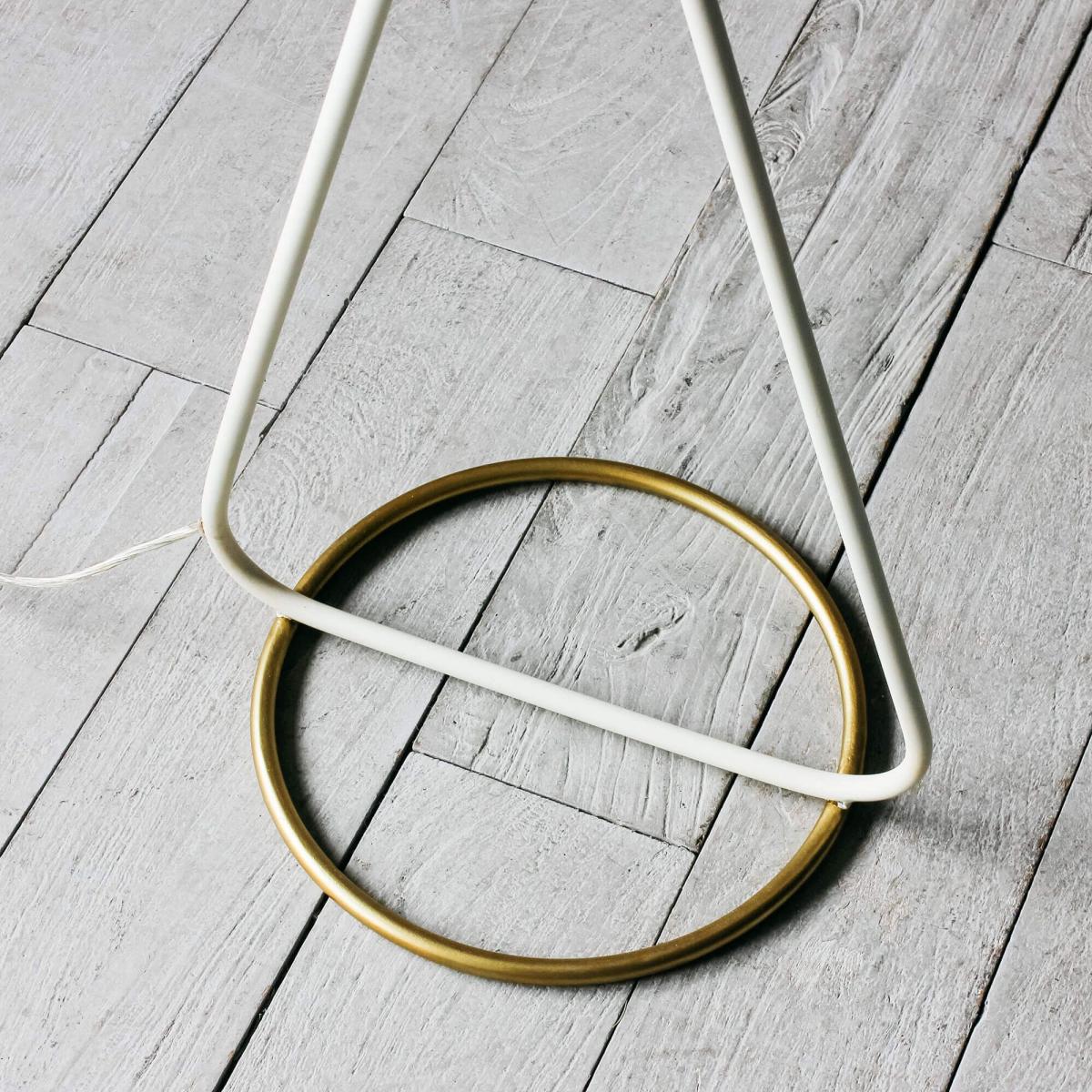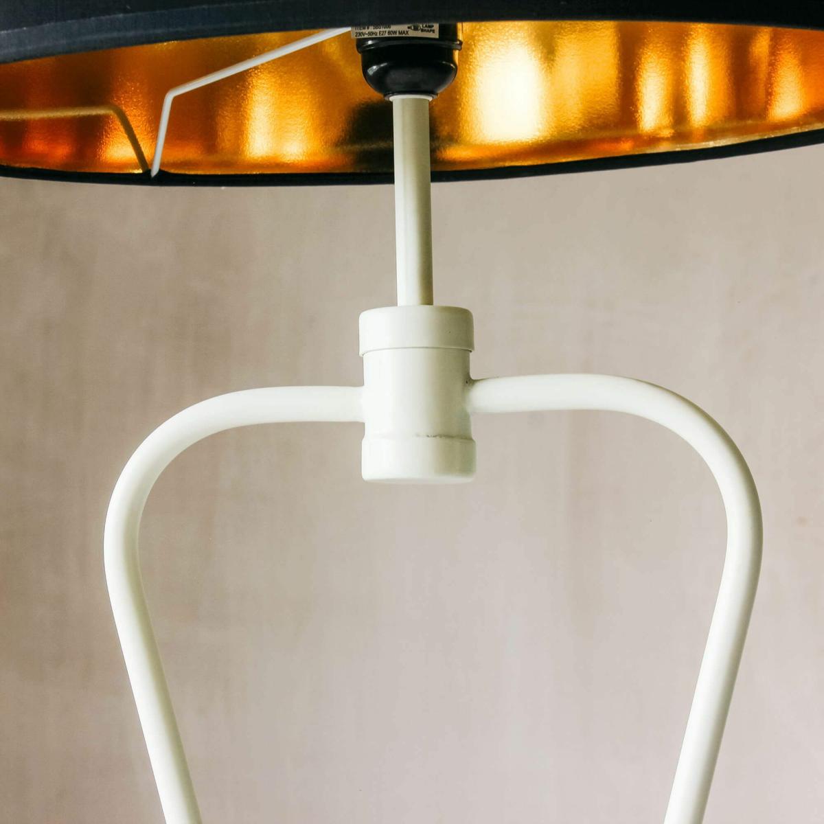I love this floor lamp because of its sleek, contemporary silhouette which works brilliantly in minimalist or eclectic interiors. The black shade adds a sophisticated touch, while the slim white stand with a gold ring detail at the base introduces subtle elegance. It’s perfect for placing next to a sofa or in a corner where you want to add ambient lighting without overwhelming the space. Practical styling tips include pairing it with other monochrome or neutral-toned accessories for a clean look, or contrasting it with textured fabrics and statement furniture for an eclectic vibe. Its understated yet stylish design makes it a versatile piece that elevates any modern living space.