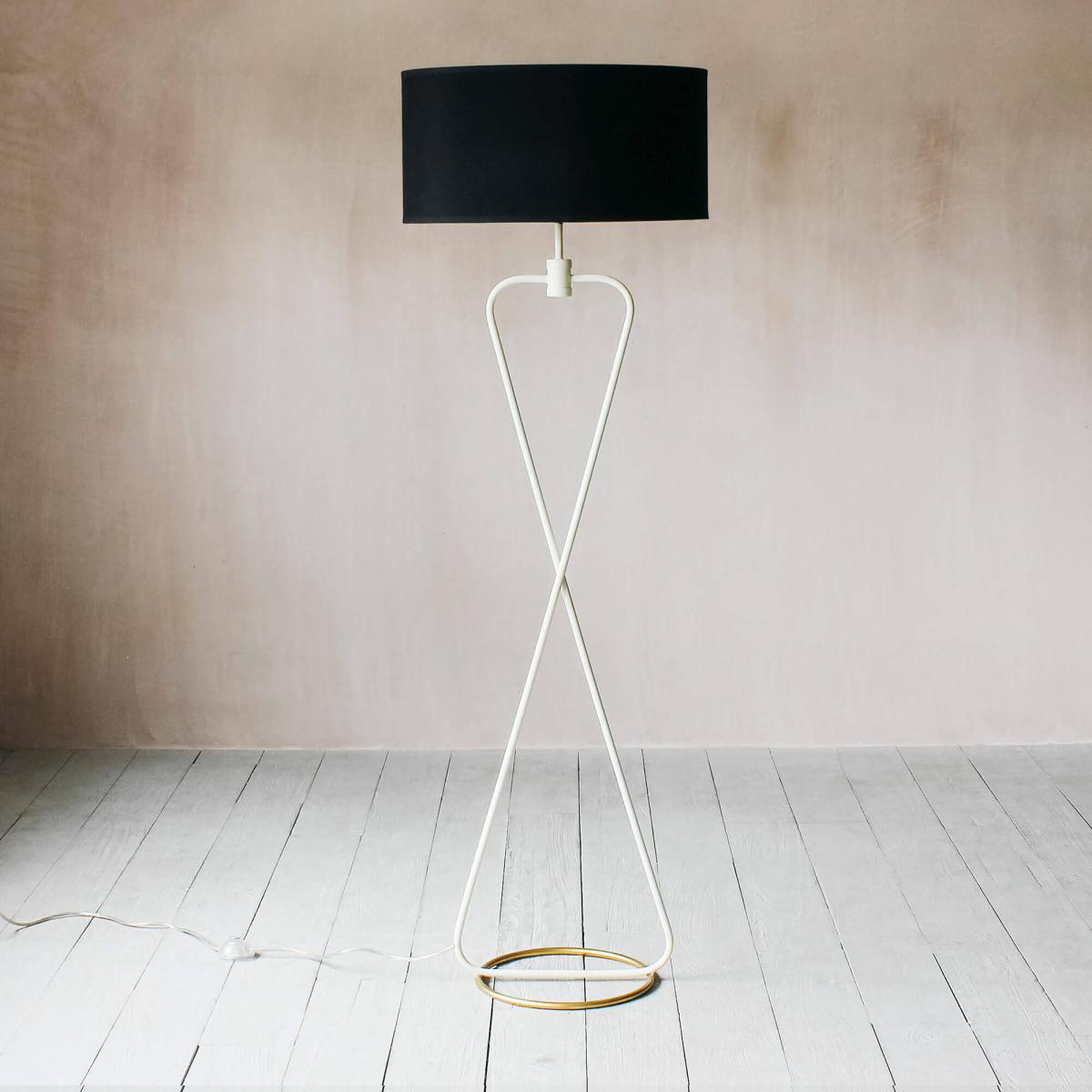 A satisfyingly seamless silhouette crafted from powder-coated iron in an ivory hue. Top this floor lamp with one of our black cotton lamp shades for monochromatic minimalism.