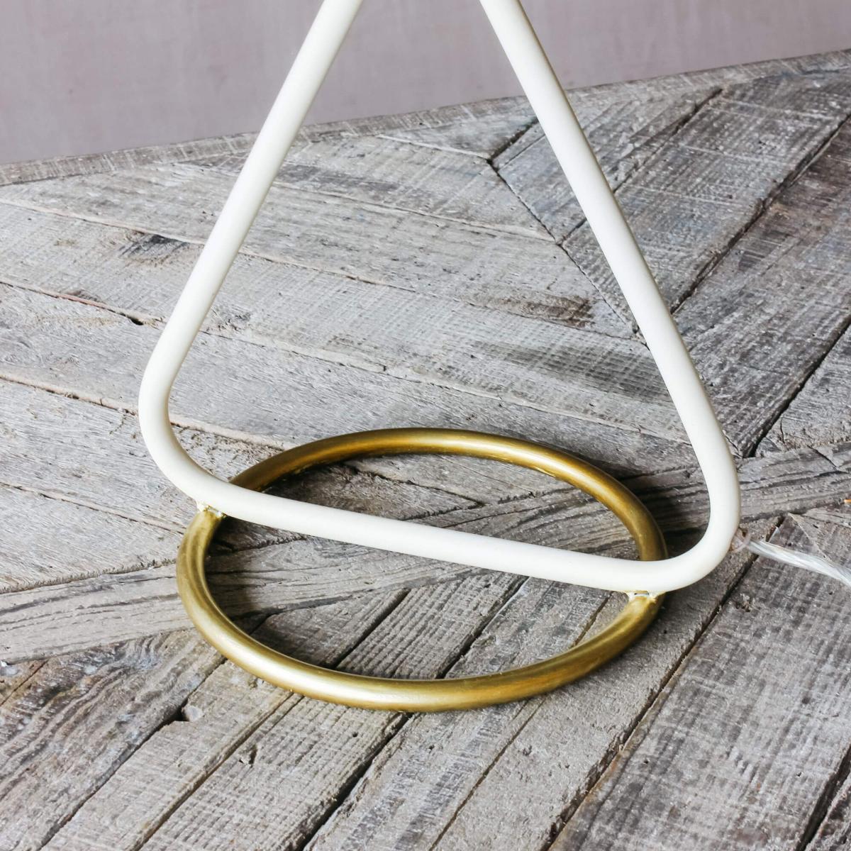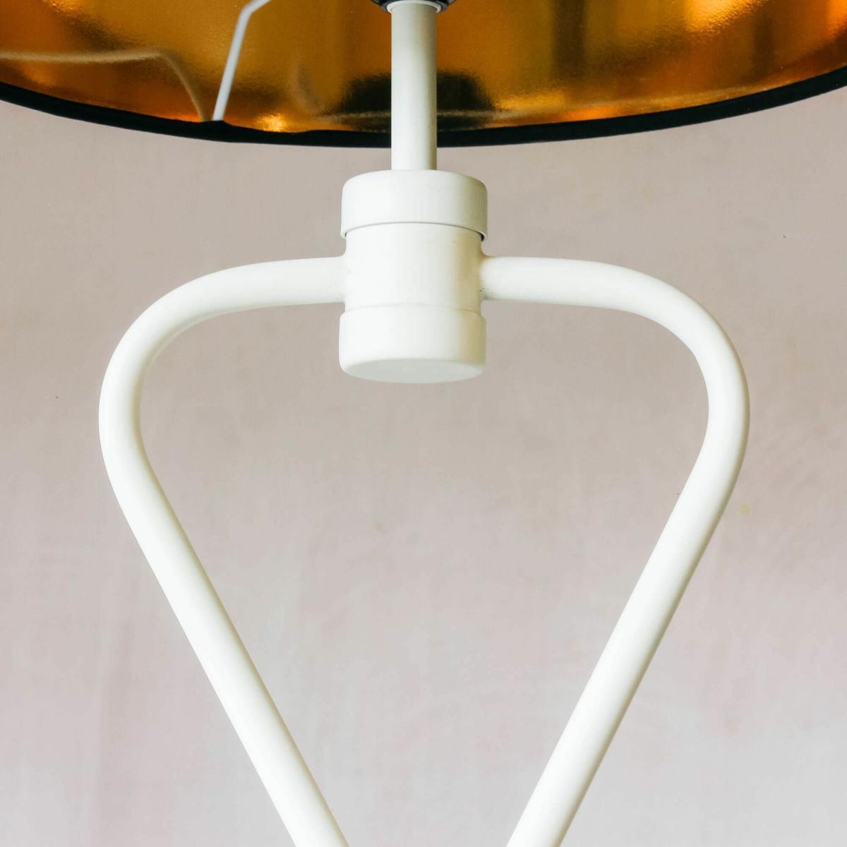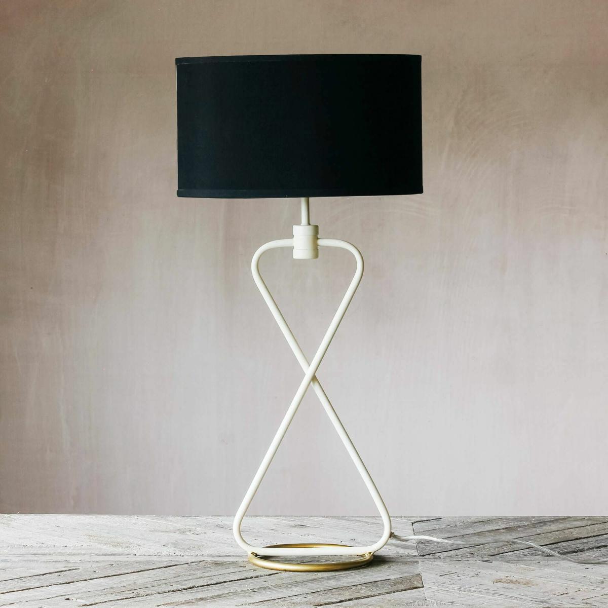 A seamless silhouette crafted from iron, powder-coated in ivory and perched on a perfect gold circle, top this table lamp with one of our black and gold cotton lamp shades for monochromatic minimalism.