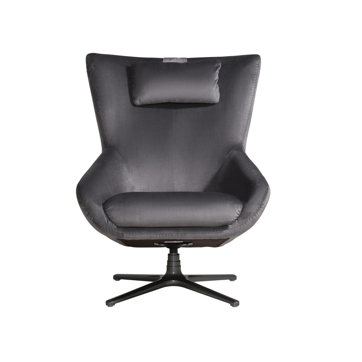 The Laurino Armchair with Headrest in a stunning grey colourway styled to provide optimum comfort and relaxation. Featuring greatly padded features including a detachable headrest, so not only stylish to look at but practical too. Beautifully proportional with an angular silhouette the perfect seat to sit back and relax in after a long day.