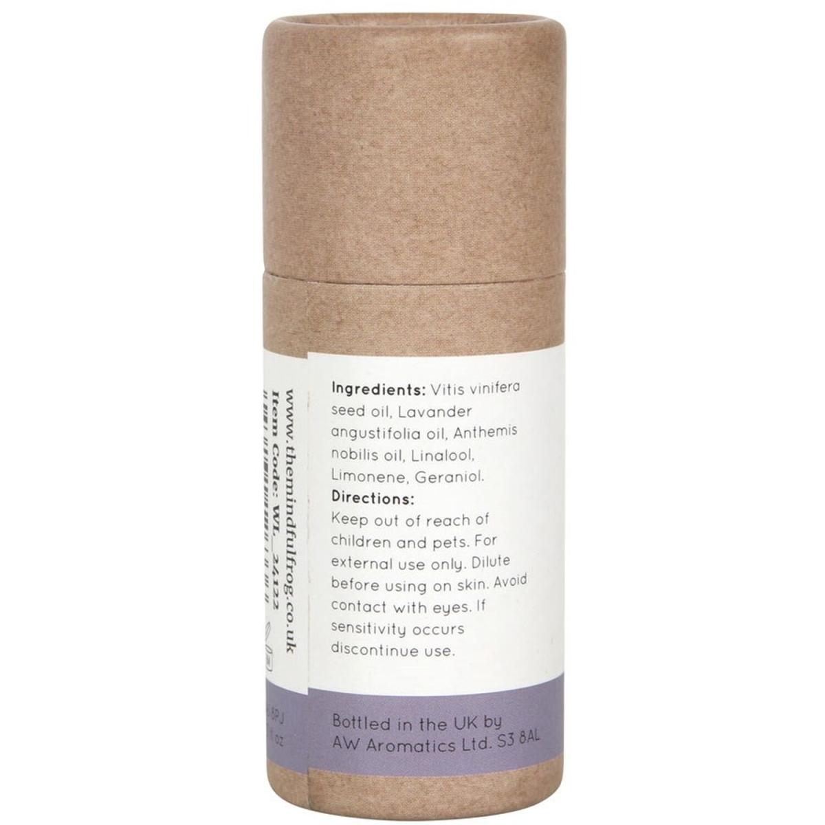 This 10ml blended essential oil pairs the stress-relieving scents of lavender and chamomile to aid in restful sleep and promote relaxation. Dilute with water and use with your favourite oil burner, add to a rollerball bottle and dab onto inner wrists as a personal fragrance, mix with water to create your own room spray, add drops to a warm bath for a relaxing home spa experience and more. 4% lavender and 1% chamomile essential oils blended with 95% Vitis vinifera grape seed base oil. Packaged in a recyclable cardboard tube. Vegan and bottled in the UK